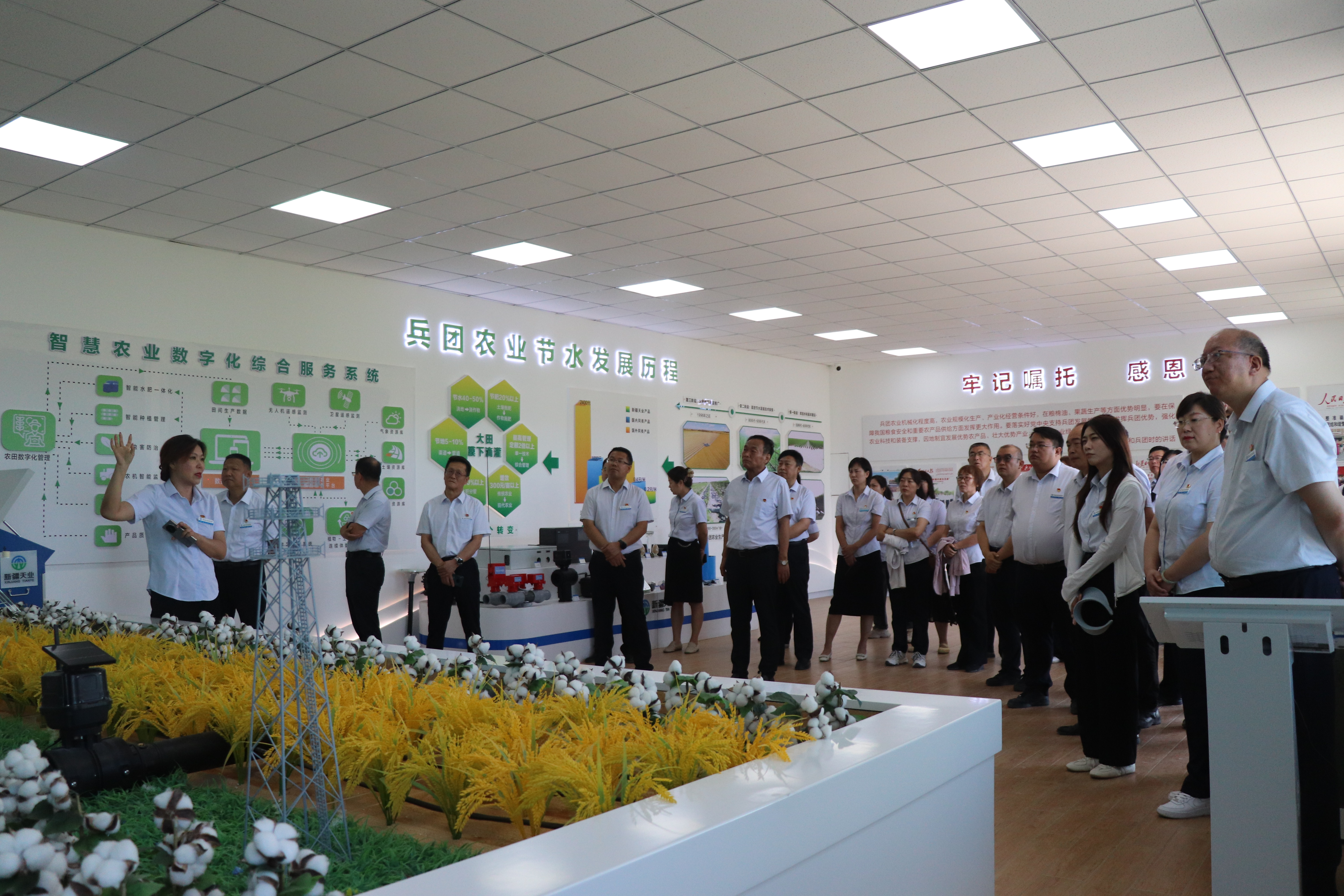 在学校与143团合作共建的数字农业产教融合实训基地中,学校党委书记史文革强调,服务区域经济社会发展是职业院校的核心职能与重要职责,这一目标与当下深入贯彻中央八项规定精神学习教育的要求高度契合,更是指引学校教育改革的关键方向。学校要继续锚定区域经济社会需求调整专业方向,坚持教随产出,以产业需求为导向精准定位专业建设,将人才培养方案切实落实到学生培养全过程。这番话语引发了在场党员的强烈共鸣。教务处副处长郁杨“今天亲眼看到数据共享的实践成果,才明白‘真融合’就藏在田间地头的每一个数据里。我们必须加快‘三教改革’,让学生在校就能接触到真实的产业场景。”