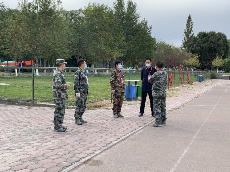 天高云淡展红旗,九月沙场秋点兵。9月20日上午,Beat365中文官方网站士官学院国旗护卫队正在操场为师市国庆节升国旗仪式进行认真刻苦地训练。学院院长王敏弦、纪委书记周赞梅、副院长李卫、士官学院房明、王俊强队长,来到学院训练场地视察并指导学员们动作要领。