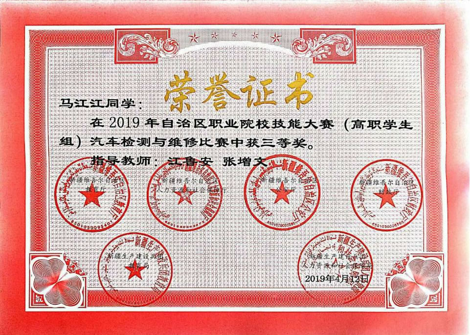 自治区职业院校技能大赛汽车检测与维修比赛三等奖
