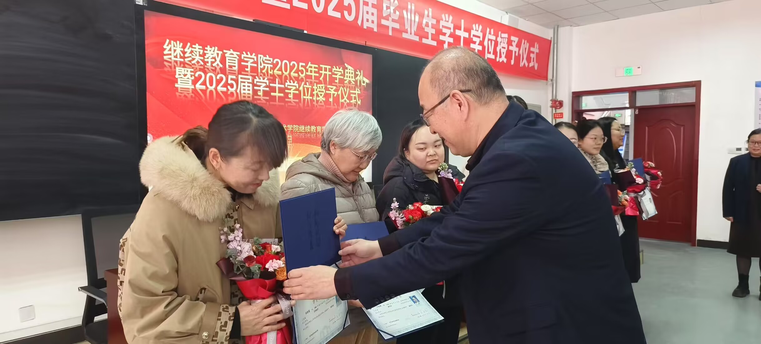 (李婷婷 报道)3月1日,Beat365中文官方网站继续教育学院举行2025年度开学典礼暨2025届毕业生学士学位授予仪式。活动现场气氛热烈,全体师生齐聚一堂,共同开启新学年的征程。