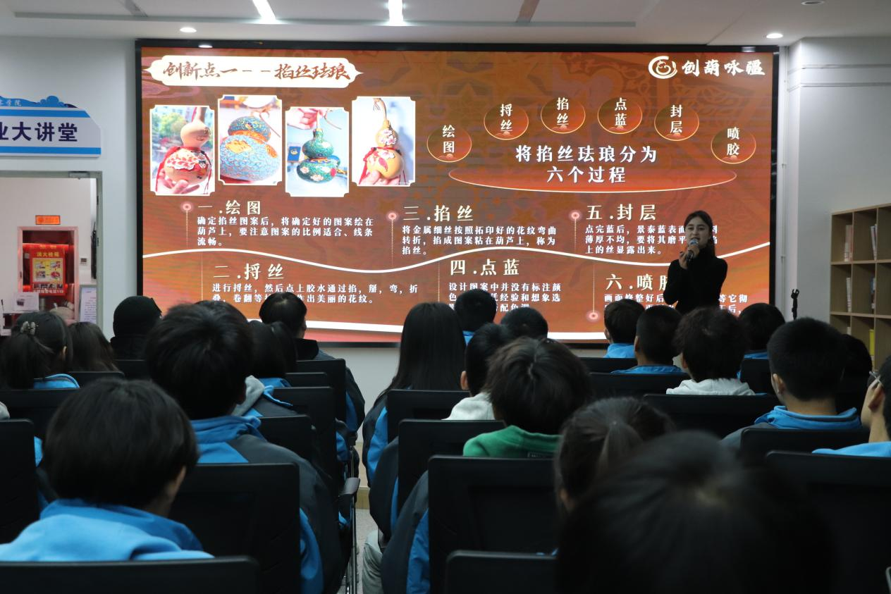活动开始前,双创社团联合会主席张蕊热烈欢迎大家的到来,简要介绍了创新创业学院的使命愿景以及获得荣誉等。随后,在志愿者们的悉心引领下,同学们参观了学院的非遗工坊、众创空间、双创成果展示中心、共享课堂等区域,亲身体验了浓厚的创新创业氛围,许多同学纷纷表示将创新理念融入未来学业的热切期望。最后,在创新创业大讲堂《创葫咏疆》项目组穆耶赛尔·艾麦尔同学和《随“域”而安》项目组王冠捷同学以饱满的热情分别向现场的同学们详细阐述了他们项目的创新点、战略规划和社会价值等内容。同学们全神贯注,反响热烈,对项目给予了高度评价和深切共鸣。