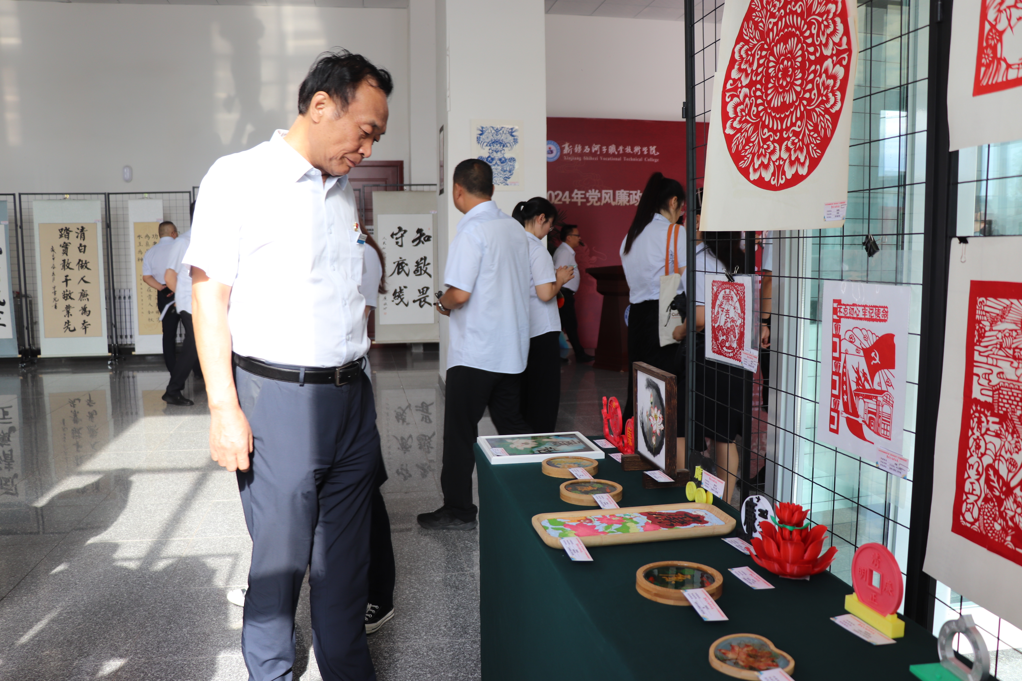 开展廉政文化作品展,弘扬清风正气。学院举办了以“遵守党纪扬正气,书写清廉职院新篇章”为主题的廉政文化作品展。本次廉政文化作品展共收到师生作品300余件,展出作品160余件,涵盖书法、绘画、剪纸、摄影等品类,内容紧扣廉政主题,形式多样、寓意深刻,营造了浓厚的廉政文化氛围。师生们通过观看展出,受到了潜移默化的廉政教育,进一步增强了廉洁修身的自觉性。