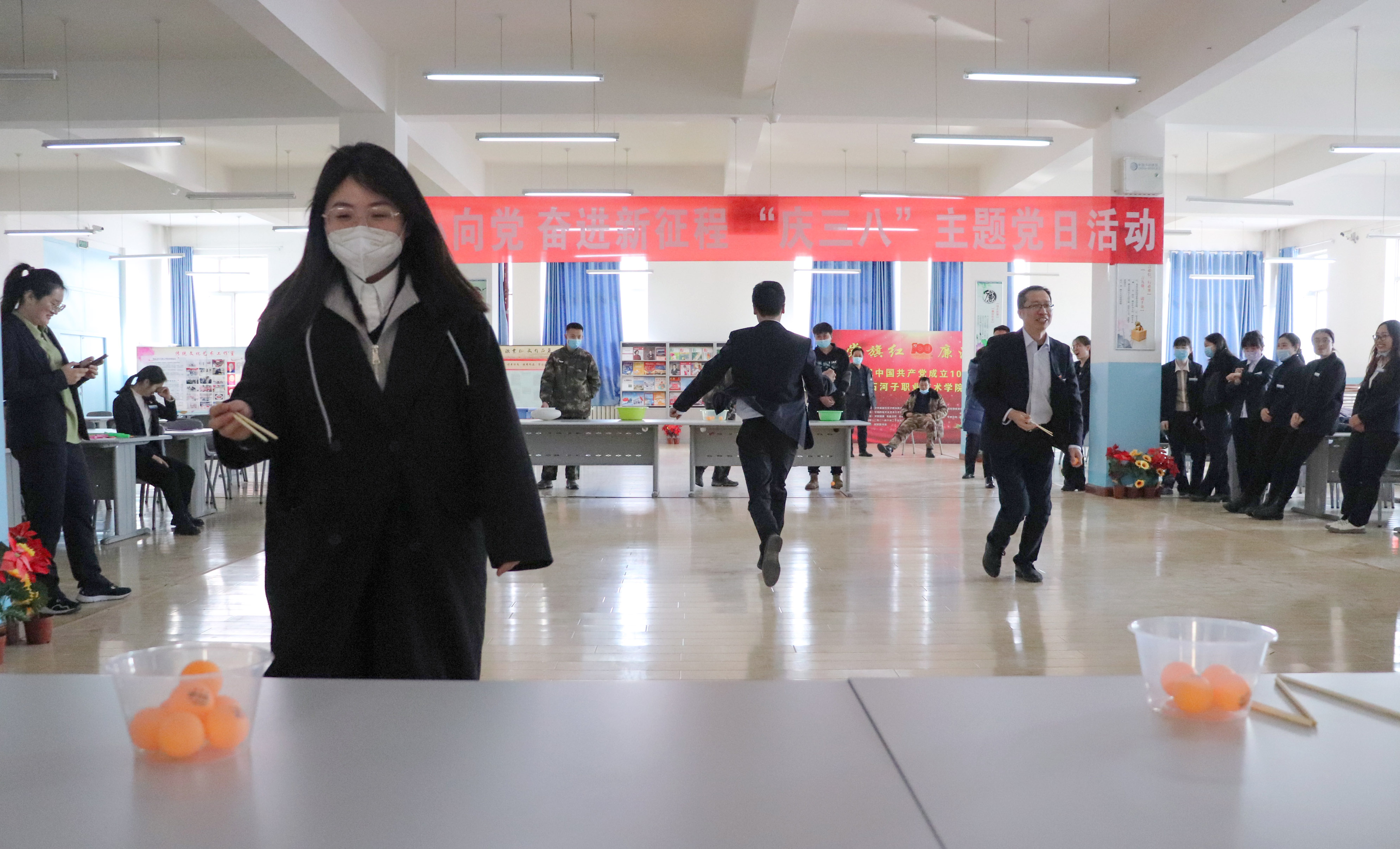 开展 “庆三八”主题联谊活动。机关直属支部联合成教分院、培训分院开展了趣味运动会,通过跳绳、夹乒乓球的单人项目和夹球跳借力赛的集体项目,很好地展示了学院广大教职工健康向上、充满活力、合作共赢的精神面貌。