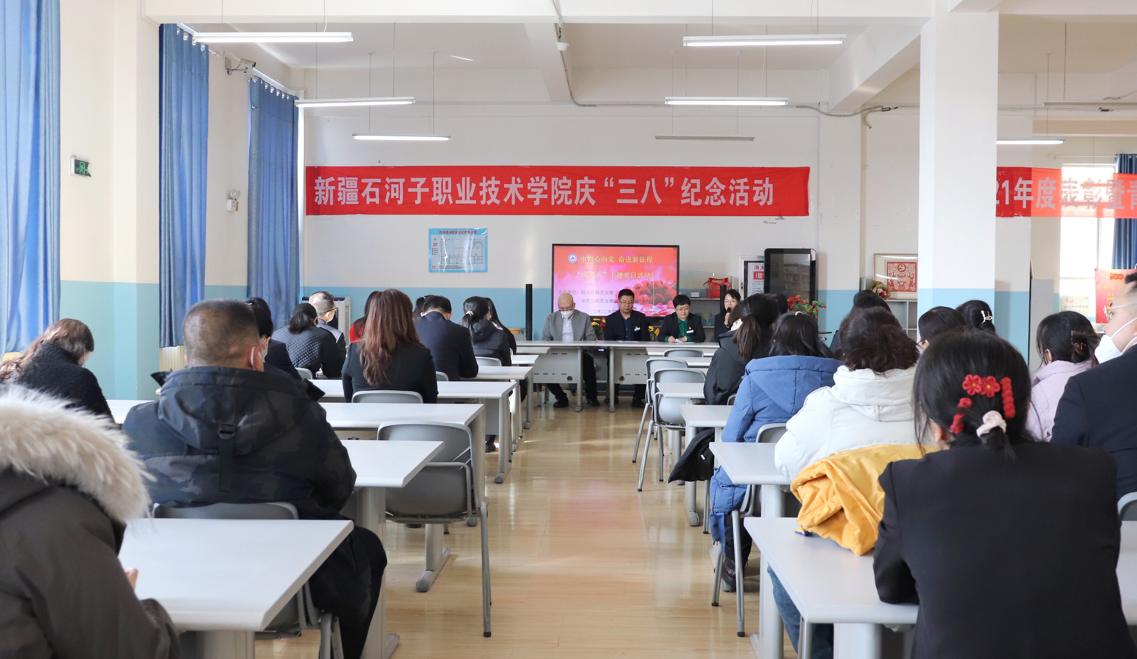 机关直属党支部书记张金果代表机关支部向广大女同胞们致以节日的问候和衷心的祝福。他表示此次活动学院工会、女工委是以深入学习宣传贯彻习近平新时代中国特色社会主义思想为根本,结合师市妇联、总工会女工委工作要求,组织开展的“六个一”主题联谊活动,希望通过此次活动,展现学院新时代女性的魅力与风采,实现“半边天”的巾帼担当。