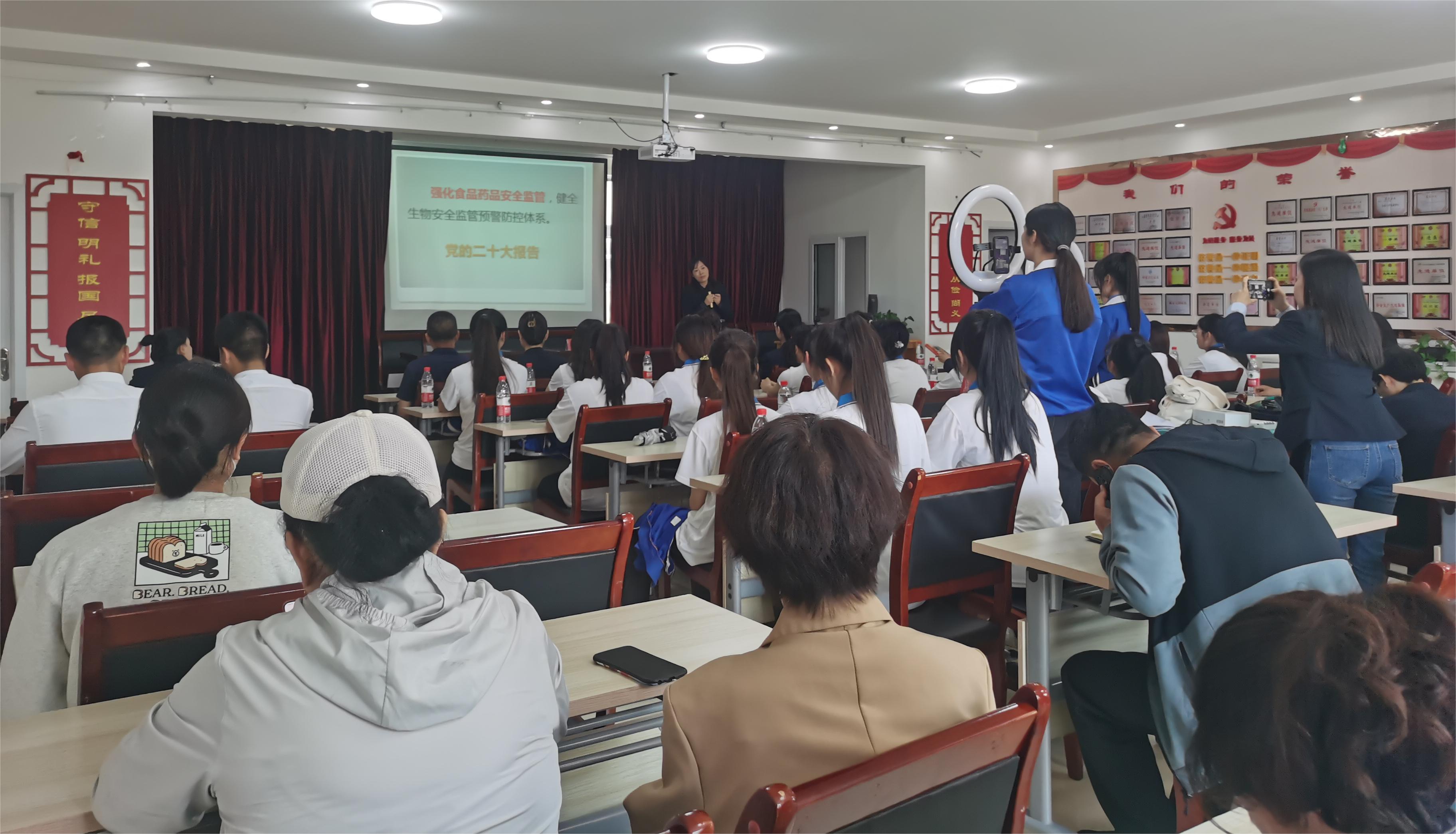 学院图书馆馆长陈建红老师为大家讲述了全国道德模范、劳动模范马军武和妻子张正美守水护边的故事,并倡议大家向身边的模范学习,时刻以优秀共产党员的标准要求自己、警醒自己,练好内功、提升修养,勤学苦练、增强本领,始终保持清正廉洁的政治本色。轻纺化工分院副院长李晓华教授为社区群众从日常饮食食品安全角度开展了科普讲座。李晓华教授的讲座活泼生动、通俗易懂,受到社区群众的喜爱。学院传统文化工作室给社区赠送了精心准备的字画作品,让社区群众近距离感受中华优秀传统文化的智慧魅力。
