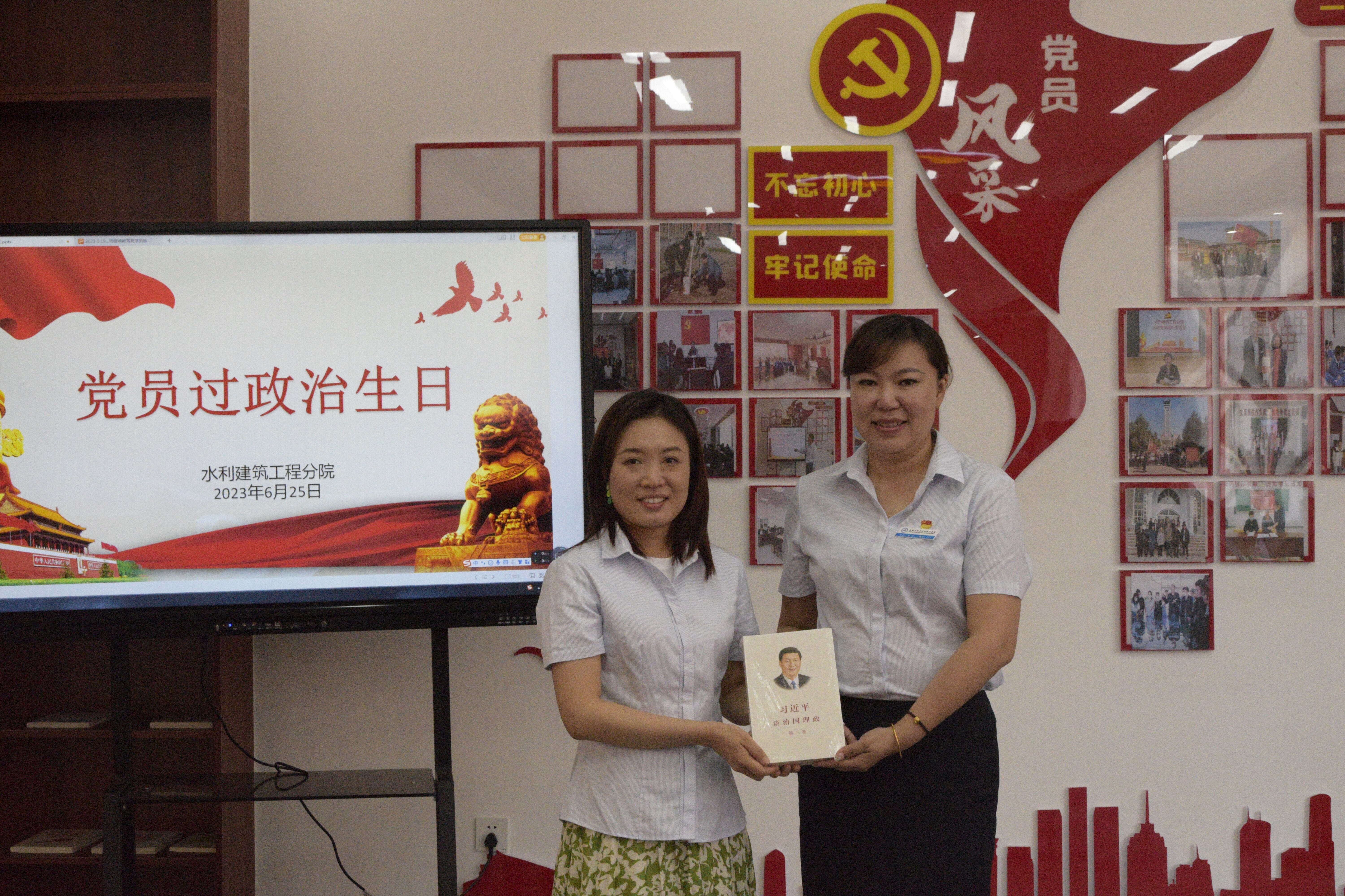 6月25日,在水利建筑工程分院党员活动室,开展“感党恩跟党走”党旗映天山主题党日活动。会前全体党员同志庄重肃立举起右拳,在党总支书记俞峰同志的带领下,共同重温入党誓词。全体党员饱含深情,回顾入党初心,纷纷表示将继续发扬胡杨精神、兵团精神,不断为兵团职业教育事业贡献力量。党员李晓芳同志说“作为一名加入中国共产党刚满一年的年轻党员,今天重温入党誓词,仍然心潮澎湃,作为党员在工作岗位上要充分发挥先锋模范作用,立足本职岗位,在学院双高建设,创建应用型本科等重点工作中贡献力量”。宣誓后全体党员在刘春晓同志的带领下,共同学习了在准确把握“六个必须坚持”中扎实推进中国式现代化,该专题学习内容是习近平新时代中国特色社会主义思想的立场观点方法的重要体现,为全体党员更加完整准确学习党的二十大精神提供了根本遵循。党总支组织21名党员现场缴纳党费活动。活动后,举办了党员过政治生日活动,党总支委员张婷同志代表党总支向刚加入党员队伍的同志赠送红色书籍,鼓励他们积极学习党的优秀著作,加强党性修养,不断强化党员意识,激发干事创业的精气神。