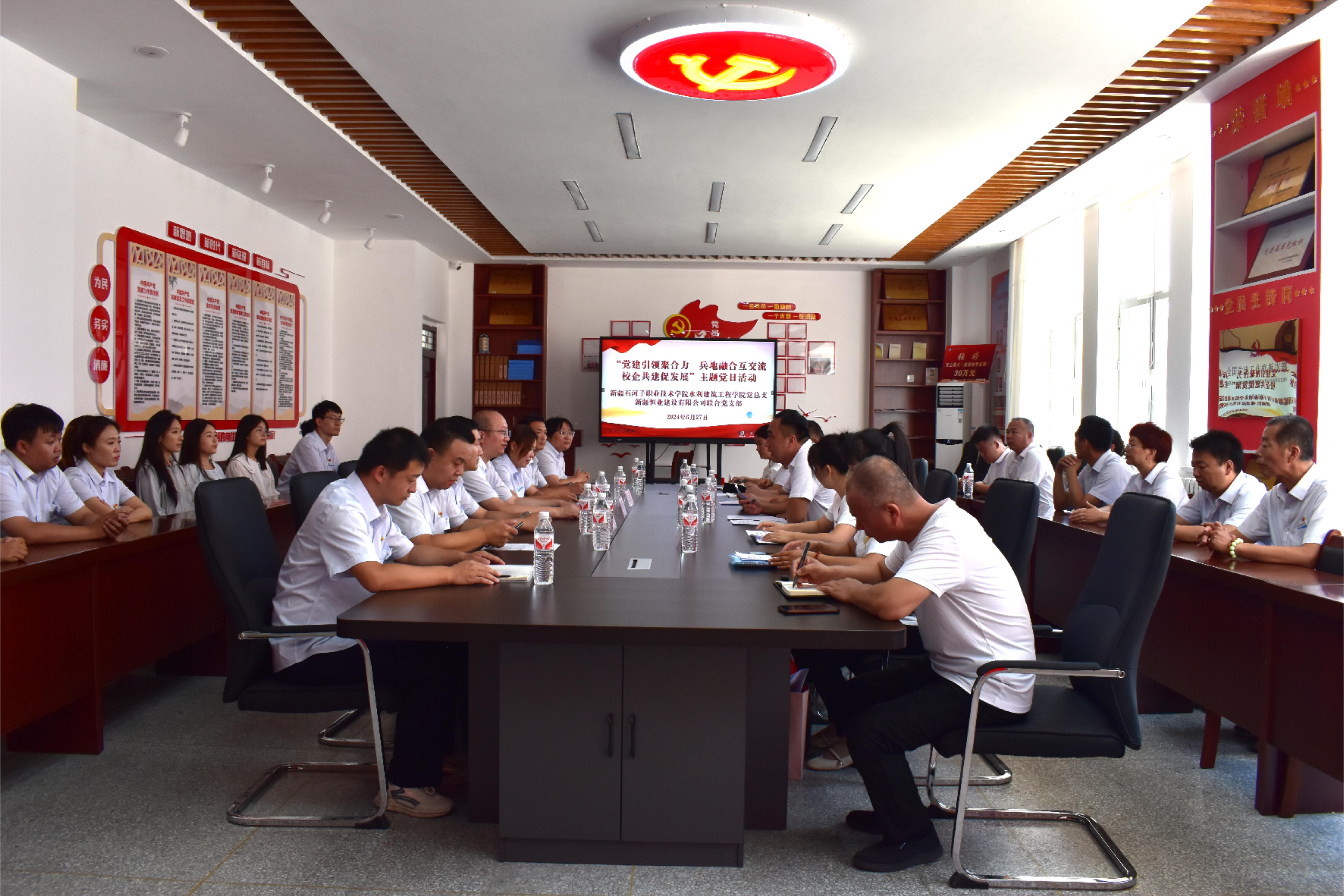 (周俞彤 报道)6月27日上午,水利建筑工程学院党总支与新疆恒业建设有限公司联合党支部联合举办了一场主题为“党建引领聚合力 兵地融合互交流 校企共建促发展”的党日活动。