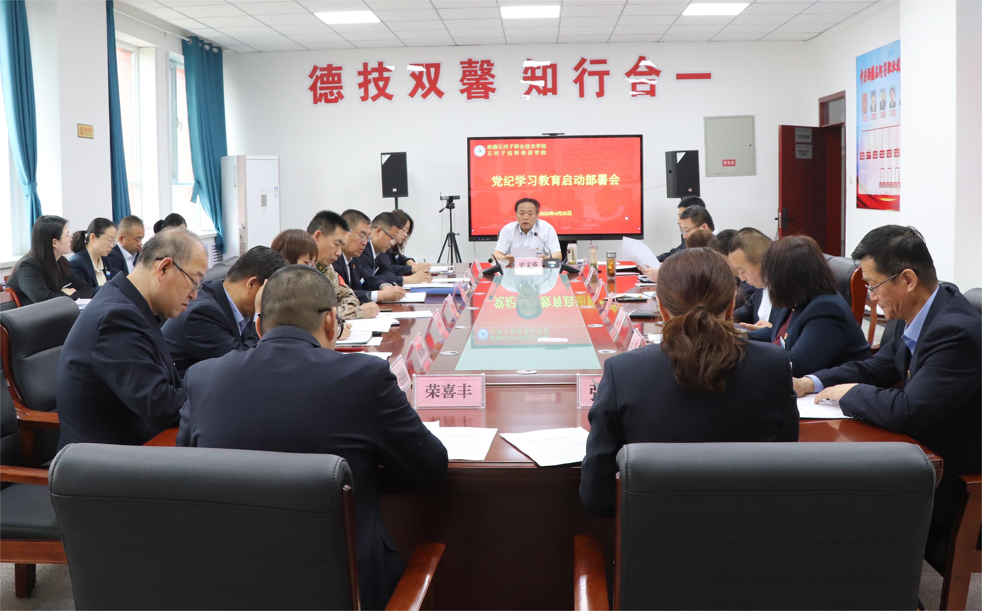 会议要求,学院各级党组织要压实工作责任,周密系统安排,加强督促落实。学院党委和二级党组织要切实担负起全面从严治党政治责任,推动各项工作落到实处。领导班子和党员领导干部要带头学习,学院各级党组织要加强对本次党纪学习教育的组织协调、督促指导,全力保障党纪学习教育有序有效扎实开展。要强化统筹兼顾,把开展党纪学习教育同完整准确全面贯彻新时代党的治疆方略和党中央对兵团的定位要求紧密结合起来,同师市“2+2+5”定位定向和“1+4+4+6”经济高质量发展布局紧密结合起来,同完成学院申报职业教育本科和国家“双高”校建设等工作紧密结合起来,坚持两手抓两促进,使党纪学习教育每项措施都成为促进中心工作的有效举措,切实防止“两张皮”,做到统筹安排、互相促进、有机结合、共同推进,确保本次党纪学习教育取得实实在在的成效,为全面推进学院高质量发展提供坚强纪律保障。