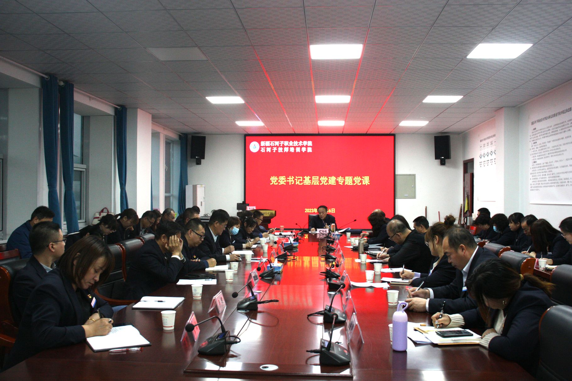 第二阶段,学院党委书记史文革作基层党建专题党课。史书记深入浅出为大家解读了党的七项建设,要求各级党组织要坚持正确的政治方向,坚持党的领导,夯实政治根基,涵养政治生态,防范政治风险,永葆政治本色,提高政治能力,为学院各项事业发展营造风清气正的干事创业好环境。他强调,基层党支部是党的“领导核心、战斗堡垒”的重要组成部分,承担着凝聚党员、带领群众、推动工作的重要责任和使命。要深入学习贯彻习近平总书记关于党的建设的重要思想,党员干部要不断提升自身的理论素养,抓好基层党组织建设,进一步强化政治功能和组织功能,成为有效实现党的领导的战斗堡垒。作为职业教育工作者,要不忘育人使命,坚定信念,自觉做中国特色社会主义的坚定信仰者和忠实实践者,作为学、为事、为人的大先生,努力把学校办成让党放心、让人民满意的高职院校,为实现中华民族伟大复兴的中国梦贡献石职力量。党课理论阐释深刻,案例丰富翔实,进一步加深了党员干部对习近平新时代中国特色社会主义思想的理解把握,更好地激励党员干部团结一心、勇毅前行。