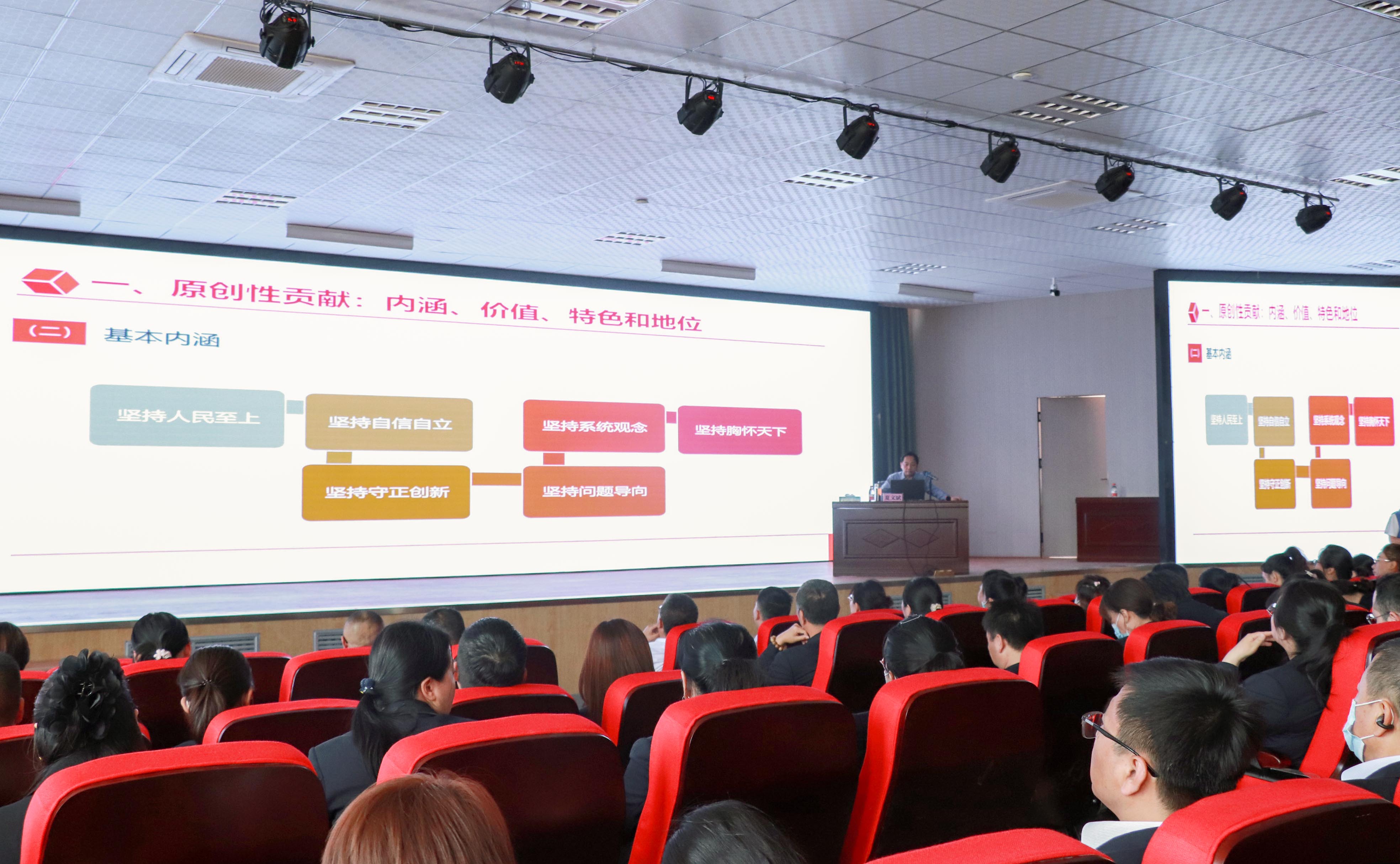 夏教授从原创性贡献:内涵、价值、特色和地位;对马克思主义世界观和方法论的守正和创新;对中华优秀传统文化的世界观和方法论的继承和发展;解决重大现实问题;推进能力作风建设等五个方面,引经据典、结合时事对习近平新时代中国特色社会主义思想的世界观和方法论进行了深刻阐释。