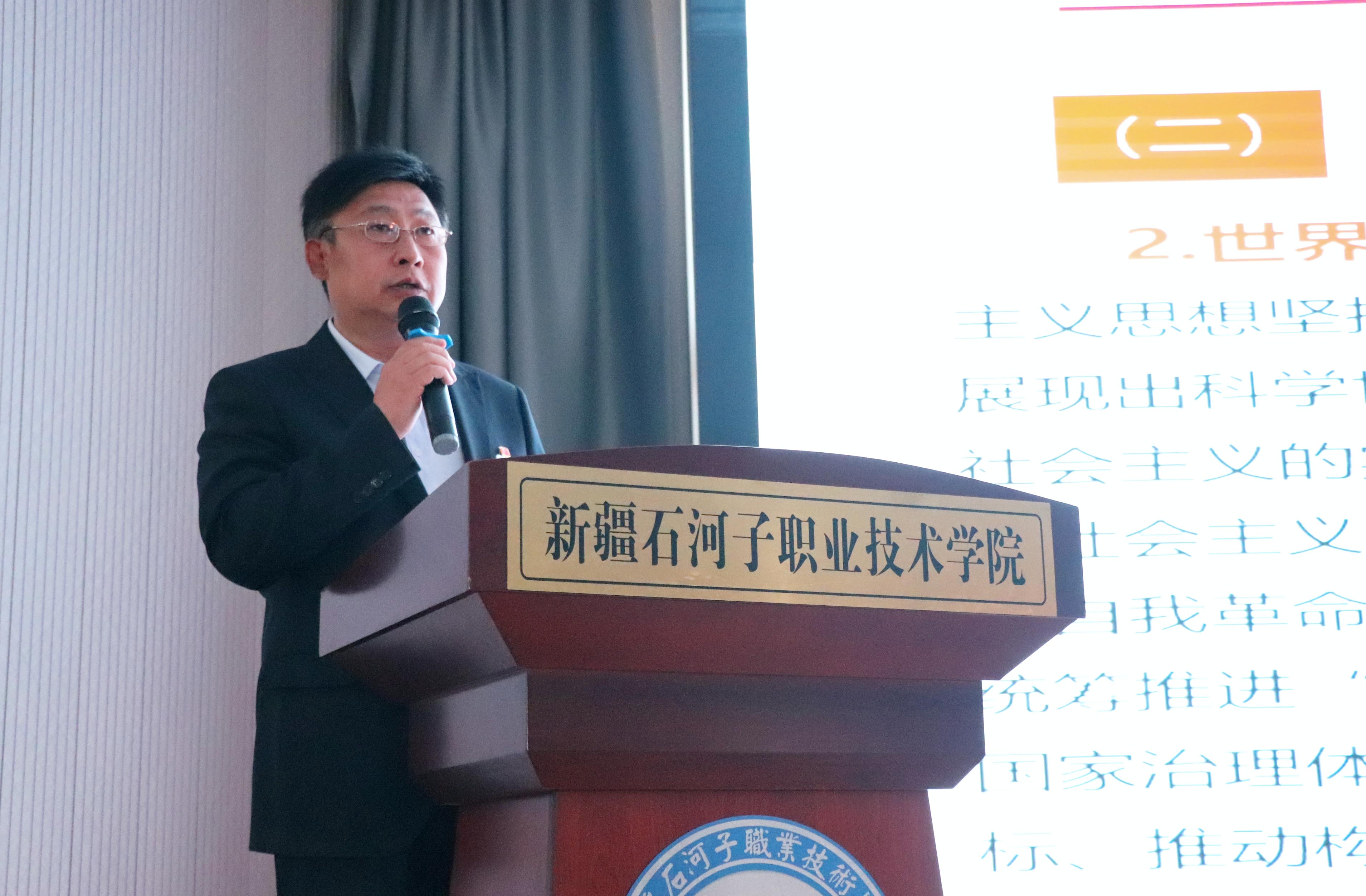 (王需 杨慧 袁晓栋报道)2023年5月23日,对外经济贸易大学二级教授、博士生导师、石河子大学绿洲学者夏文斌教授应邀来到Beat365中文官方网站作主题为《深刻理解习近平新时代中国特色社会主义思想的世界观和方法论》专题讲座,学院党委副书记、院长林炯,纪委书记晁利君,全体教师、青马班学员、入党积极分子、士官生代表300余人在行政楼北附楼三楼阶梯教室聆听了讲座。