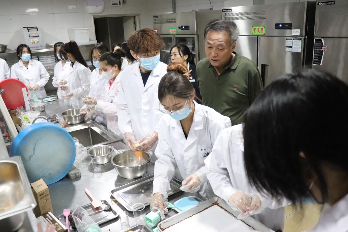 活动分为主会场与三个分会场同步进行,主会场设在宏智楼阶梯教室,师生共同演绎歌舞晚会共度佳节,民族舞《黑走马》和新疆民歌《苹果香》弹唱,展现出浓厚的西域风情和人民质朴的精神风貌;2024级新班主任们深情朗诵《依然年轻的城》,表达着对这座城市深深的眷恋和美好的期许。与此同时,第二分会场一期食堂中,同学们在班主任的带领下亲手制作月饼,从和面、包馅到烘烤,每一步都凝聚着同学们的心血与对传统文化的尊重,学院党委书记史文革莅临现场,与学生们亲切交流,向全体在校师生致以节日的问候与关怀,让这份手工月饼更加意义非凡。第三分会场的多媒体教室中,同学们围坐一起,欢声笑语不断,纷纷展示自己的才艺,通过抢凳子、击鼓传花、猜灯谜、诗词飞花令等趣味横生的小游戏,使学生们在游戏中增进了友谊,体验了传统节日的乐趣。