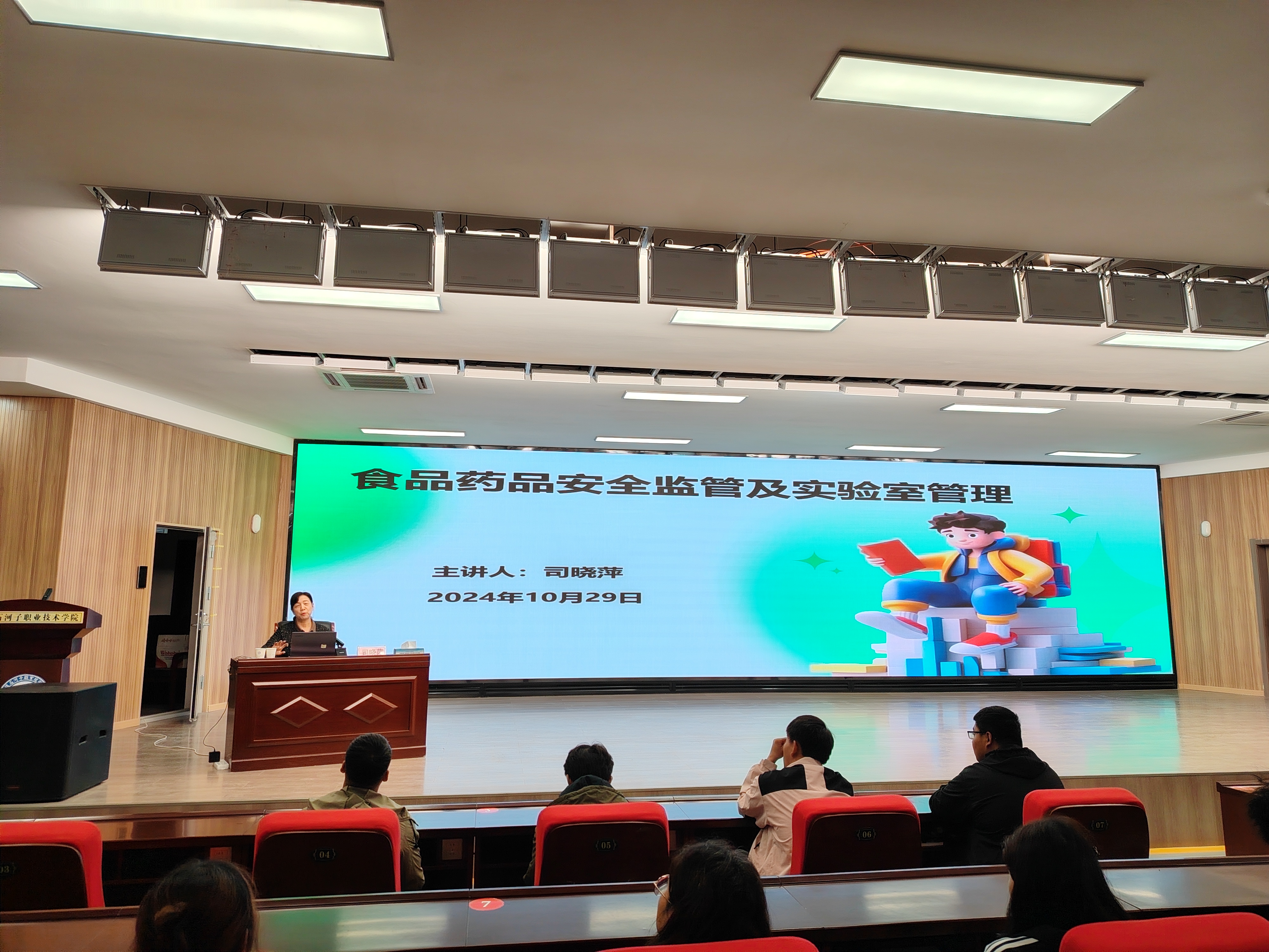 2024年10月29日,食品工程学院邀请兵团药品检验所所长司晓萍开展“大国工匠进校园”活动,为食品检验检测技术专业140余名师生带来了一场别开生面的讲座。