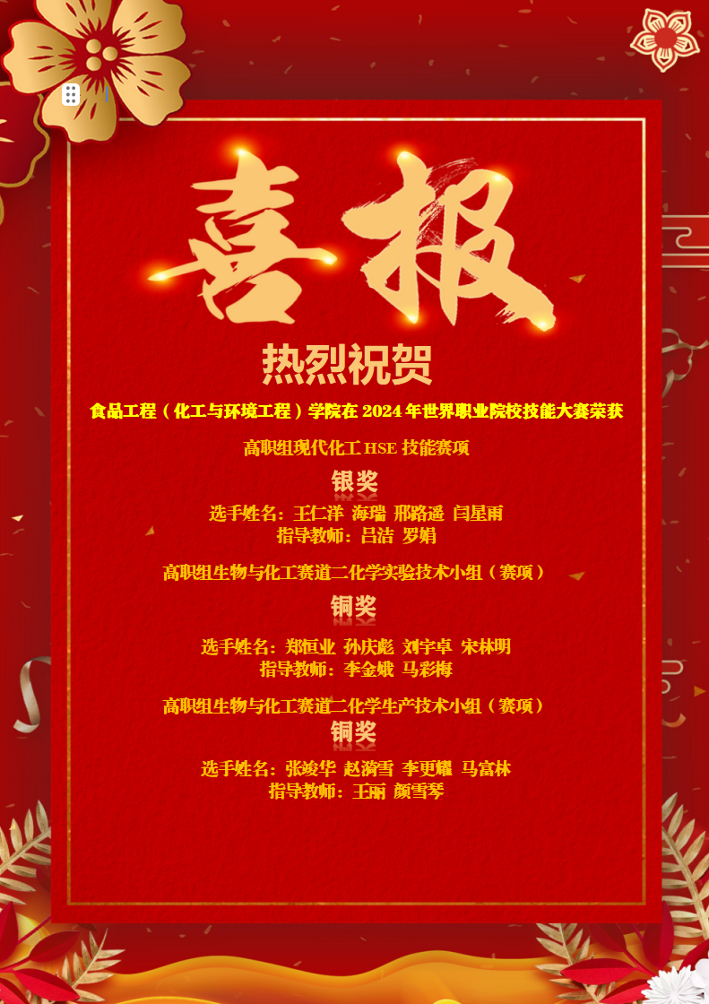 【喜报】食品工程(化工与环境工程)学院在2024年世界职业院校技能大赛中喜获佳绩