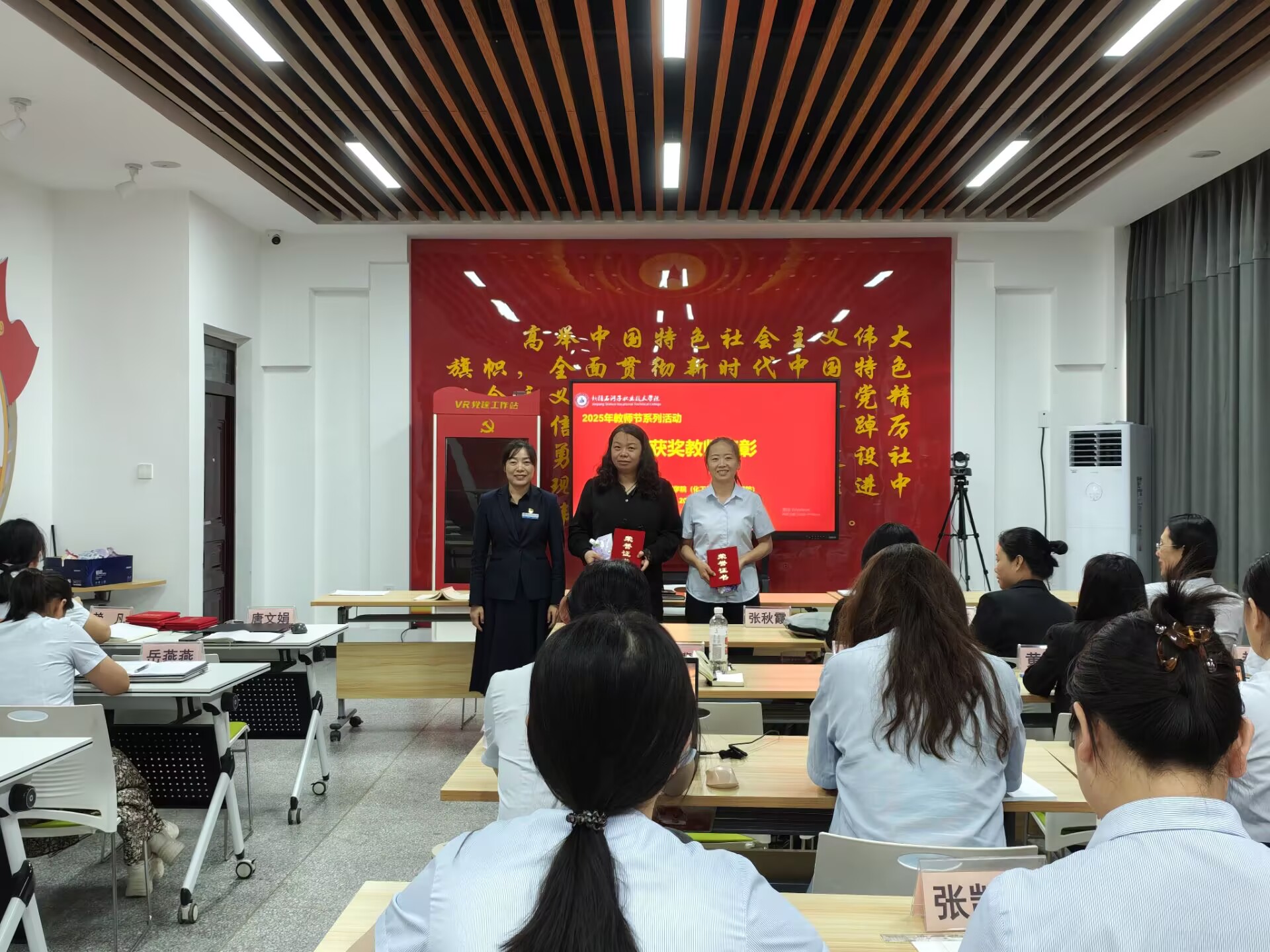 表彰大会中,食品工程学院(化工与环境工程学院)党总支书记李晓华,副院长武亮、石妍为获奖教师颁发荣誉证书,向他们在赛事中取得的优异成绩表示热烈祝贺,并向全体教师传递“以赛促教、以赛促研”的育人理念。在经验分享环节,获奖教师代表李金娥、邵美琪上台分享经验。李金娥老师结合带领学生备战大赛的经历,详细讲解了“以实战练技能、以协作破难题”的备赛思路;邵美琪老师则以“赛事赋能教学创新”为主题,分享了从参加教师教学能力大赛到指导学生技能大赛的成长心得。两位老师的分享干货满满,为在场教师提供了可借鉴、可实践的教学与备赛经验。