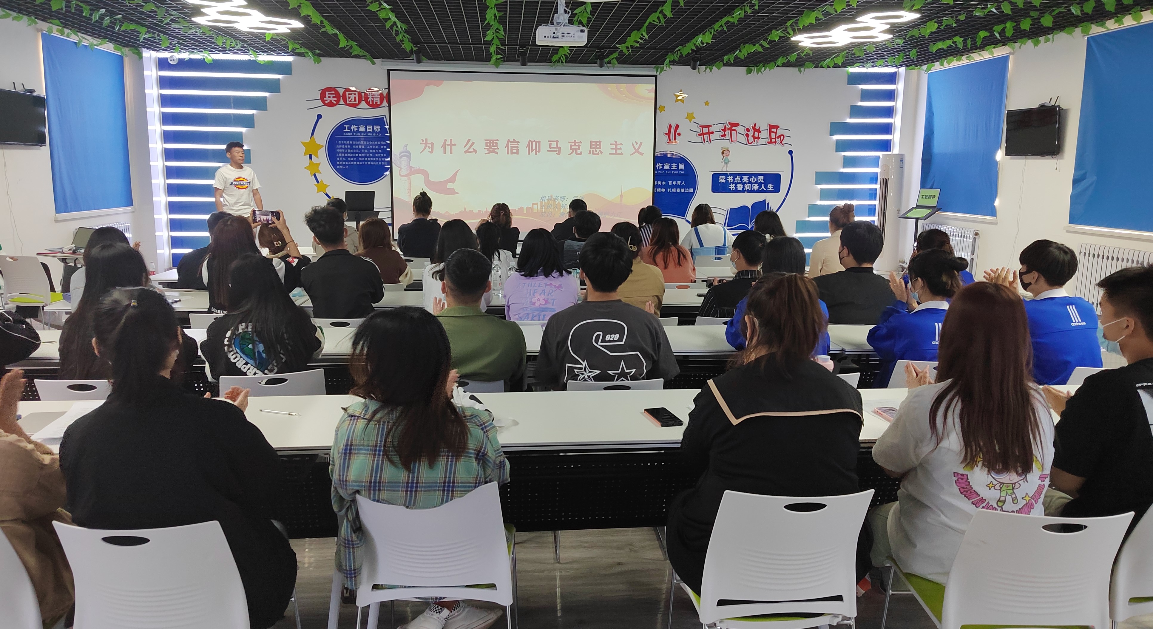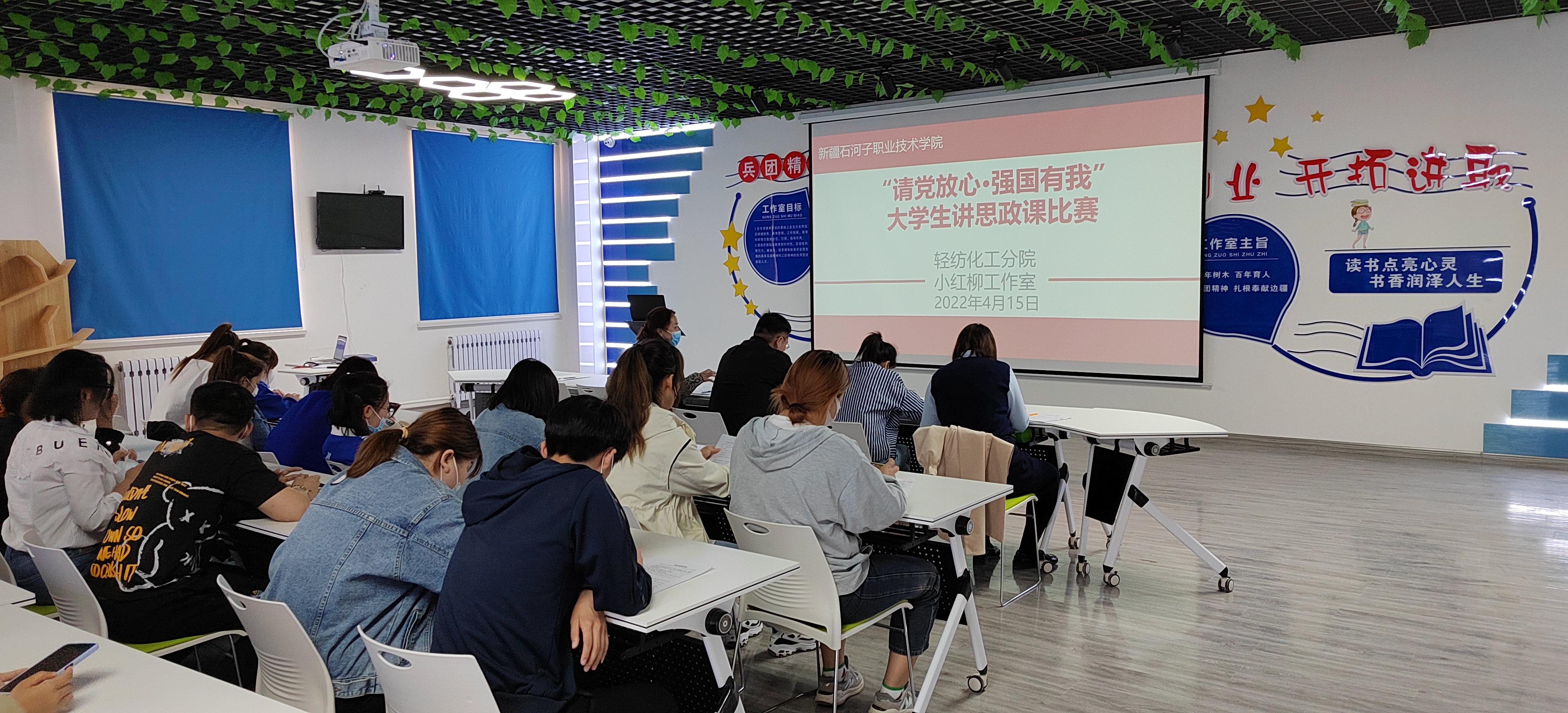 2022年4月14日至4月15日,在实训楼301小红柳辅导员工作室,一场“请党放心·强国有我”大学生讲思政课比赛精彩开讲。