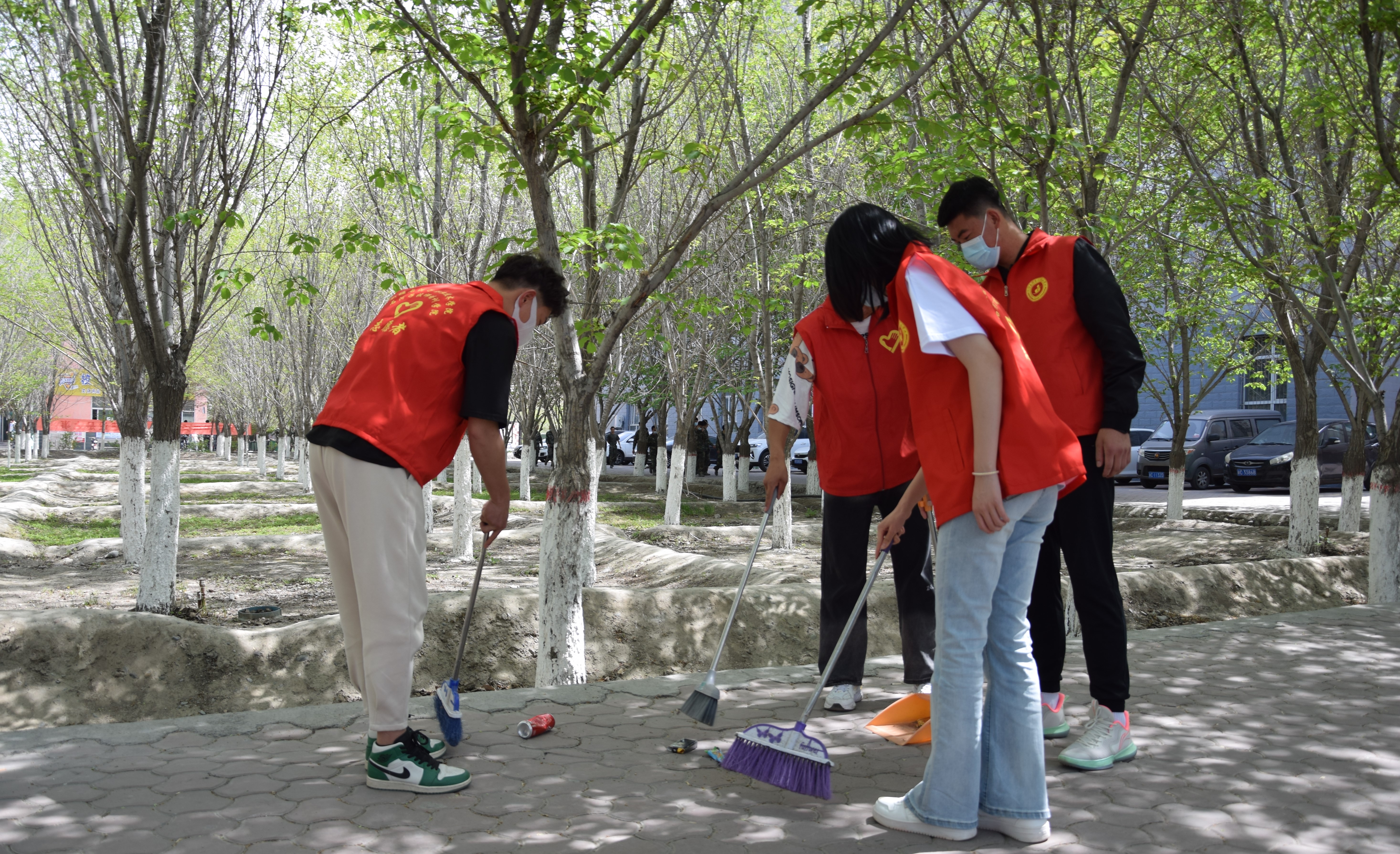 2022年4月19日至23日,轻纺化工分院组织170余名志愿者开展志愿服务活动,同学们在实训楼、室外环境区以及二号食堂周边道路开展了校园环境卫生大扫除,用实际行动关注小环境,共享大健康。