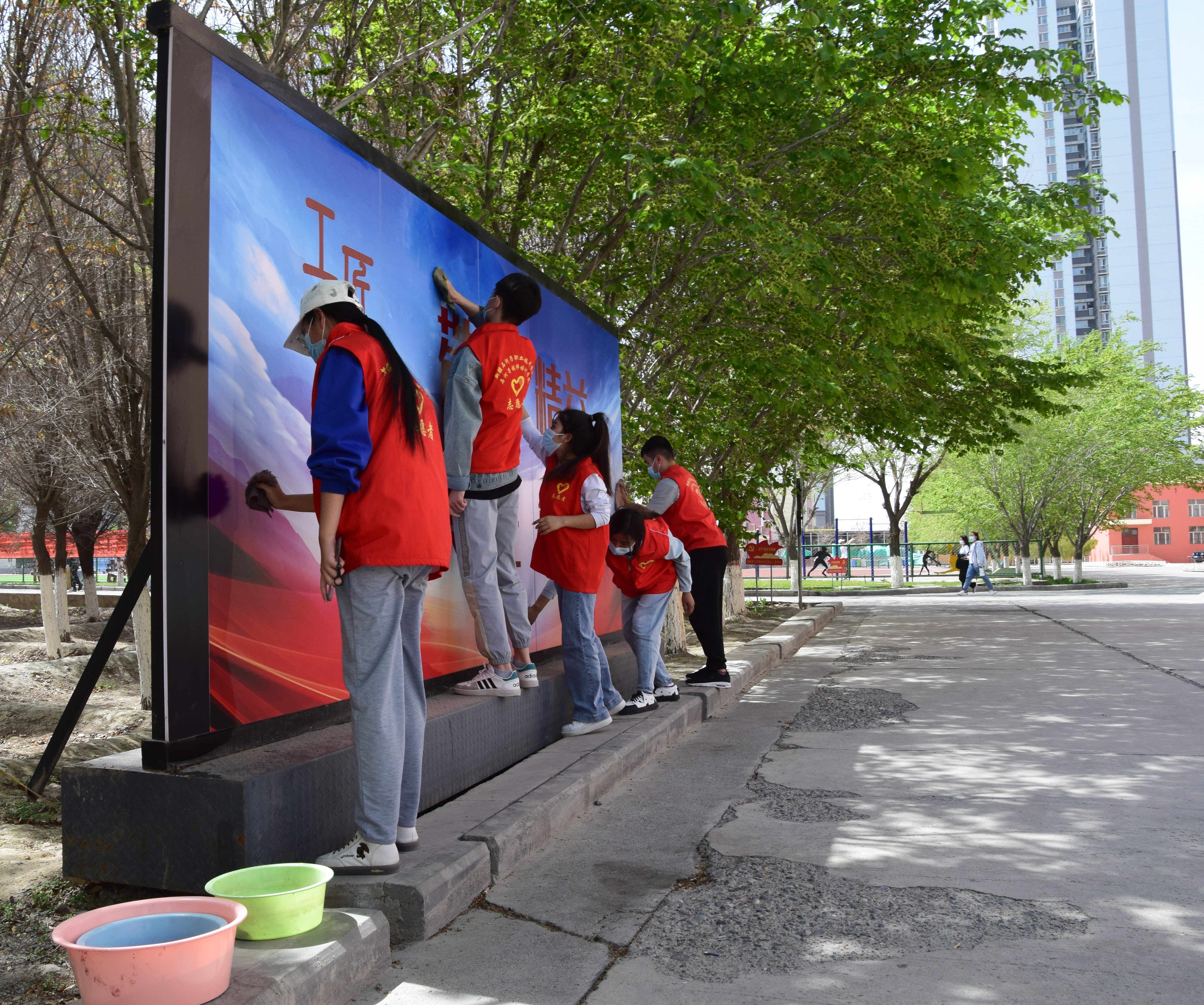 活动中,志愿者们手持扫帚、垃圾桶等工具,本着不怕脏、不怕累的奉献精神,针对道路上的杂草、塑料袋等垃圾进行了集中清扫,并劝导同学们主动拾起路边垃圾。对主干道两旁的校园文化宣传栏进行擦拭,宣传标语焕然一新。大家发挥“团结、友爱、互助、进步”的精神,圆满如期完成校园清理的任务。