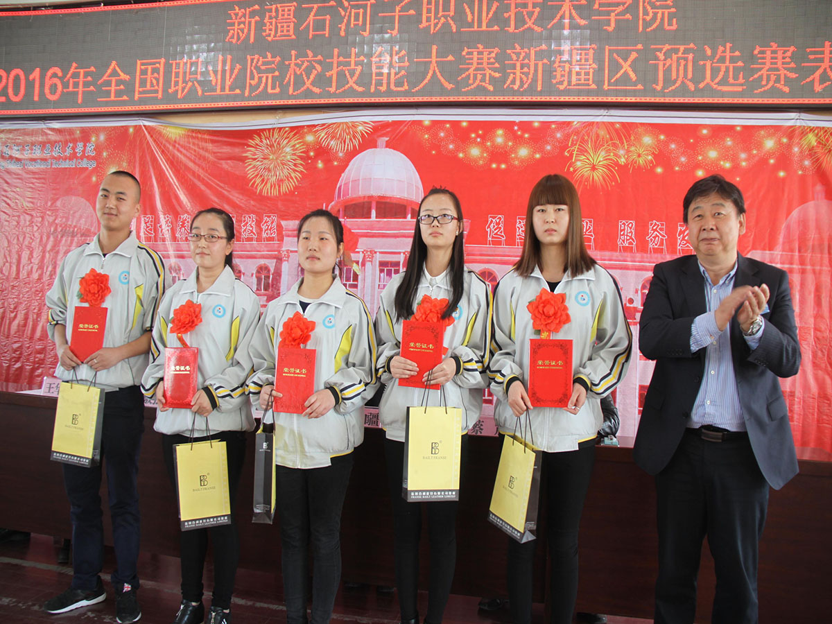 王敏弦院长向在2016年自治区职业院校技能大赛中获奖的所有参赛选手、指导老师表示热烈的祝贺。2016年全国职业院校技能大赛暨新疆区预选赛中,我院再创佳绩,共获得26个奖项,其中获得一等奖2个,二等奖10个,三等奖14个,是历年大赛最好成绩。经贸分院李英、魏灵、董爽、赵雪同学在自治区会计技能比赛中以绝对优势击败其余12支代表队,获得一等奖,信息分院马刚同学在自治区动漫制作选拔赛中获得一等奖,他们均以第一名的成绩获得全国技能大赛参赛资格。