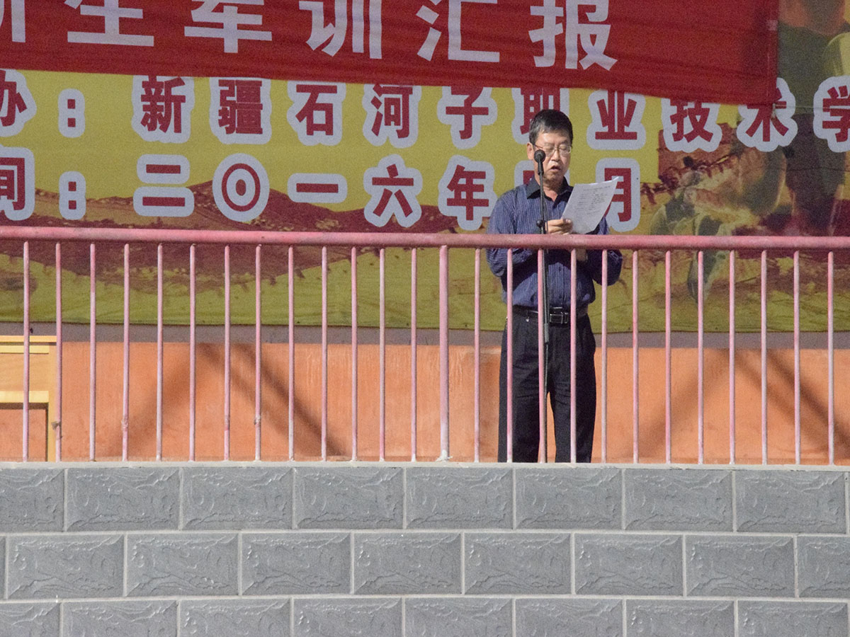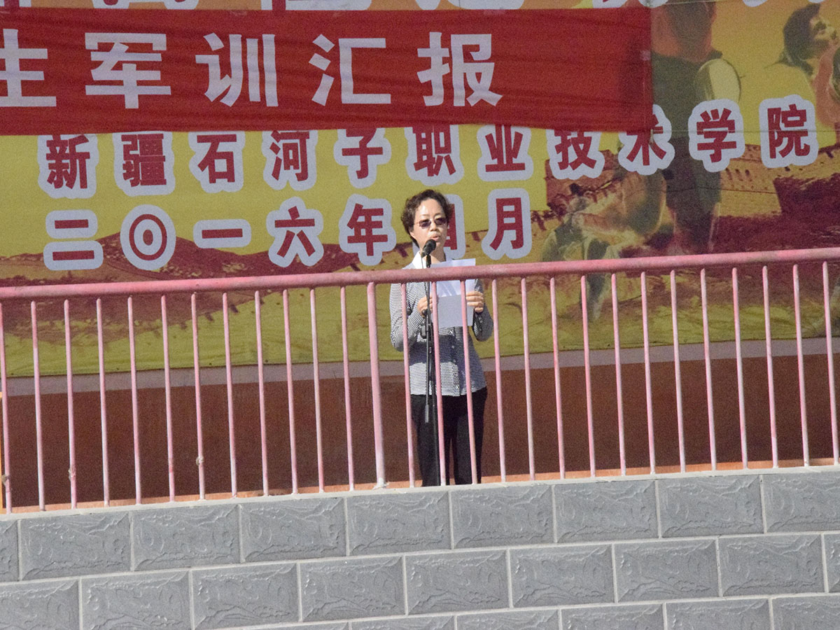 大会在学院田径场隆重举行,学院党委书记陈建丽、石河子大学国防生选培办惠鹏少校、学院副院长王华东、副院长管和疆、机电分院书记胡英、轻工分院书记李芳、信息分院书记李卫泉、经贸分院院长栗劲松、水建分院院长弓中伟及各新生班级班主任出席了大会。大会由学工处副处长陈峻主持。