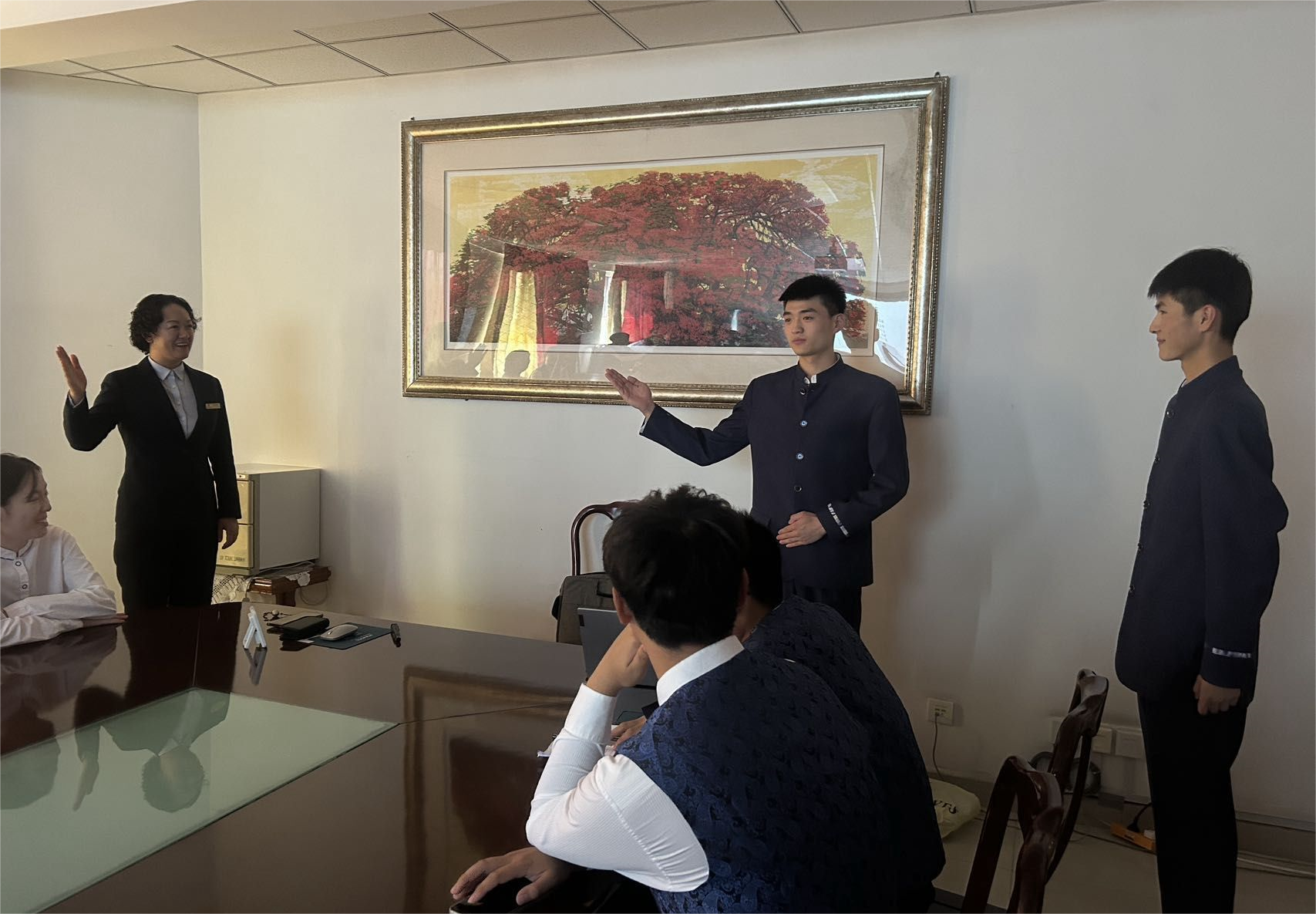 在开展志愿服务工作中,志愿者们负责、认真的工作态度和表现得到了中外宾客的高度认可和赞赏。现代服务学院学前教育231班的娄可欣同学在接待吉尔吉斯坦的宾客时,遇到了这样一件事。宾馆提供了绿茶,但客人习惯饮用红茶,在语言不通的情况下,娄可欣同学积极提供帮助和解决方案,最终帮助宾客提供了红茶。国外友人使用手机翻译软件打出“感谢你的服务和帮助”对娄可欣同学表示感谢,娄同学深受触动,为自己能够帮助到别人而深感自豪。