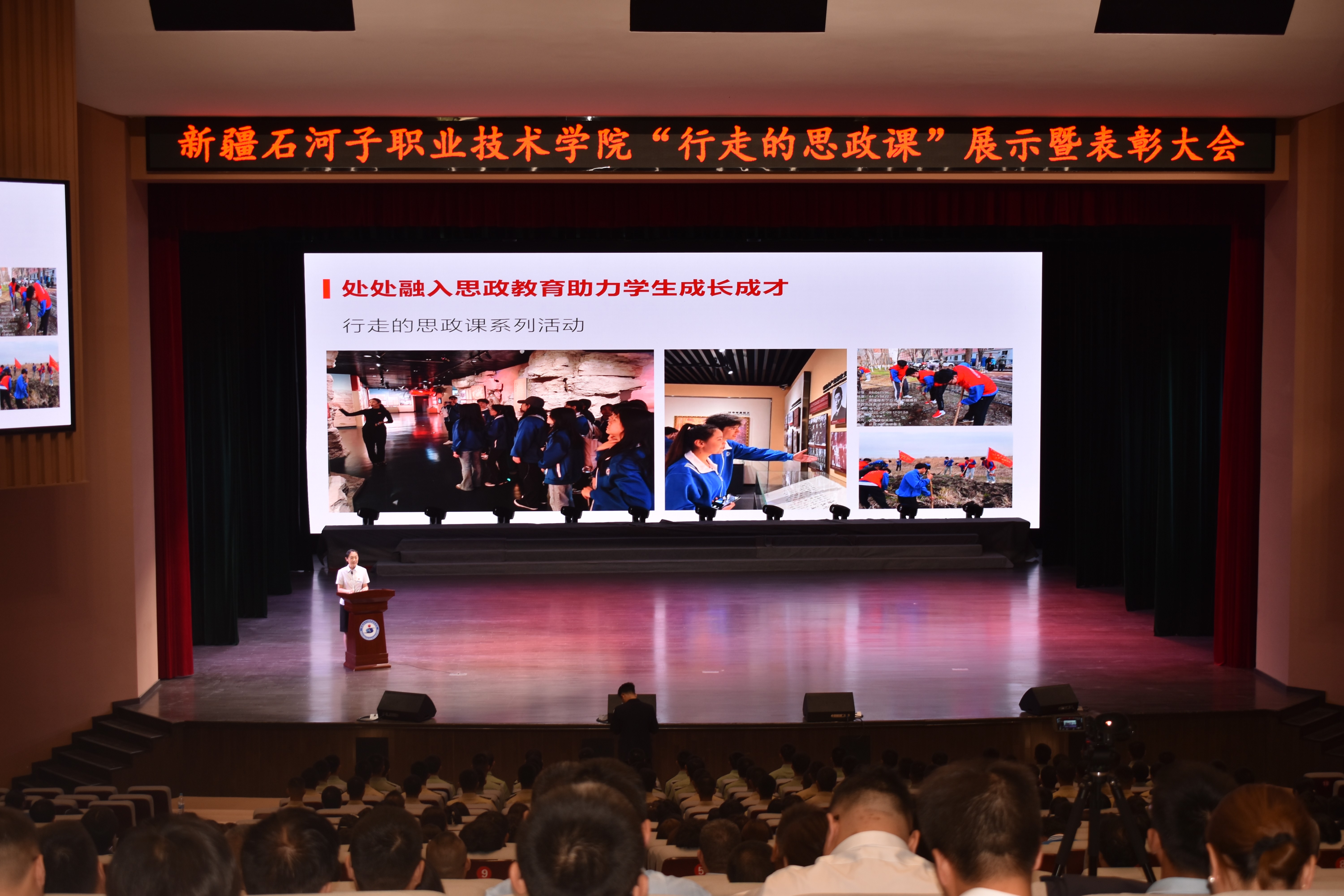 本次“行走的思政课”,共有9246名学生参与其中,实现在校生全覆盖。此次展示活动主会场设在学术报告厅,其他4个分会场以直播的形式进行观看。精心挑选展示的11个研学作品经二级学院推选、学院党建思政创新团队指导后形成,通过“红色之旅”“奉献之行”“文化之根”和“社会之基”四方面内容,让红色场馆、城市街道、企业社区、乡村团场变成“课堂”,让革命文物史料、社会发展成果变成“课本”。同学们认真观察,善于思考,结合自身实际,形成了一份又一份精彩的“朋辈”思政课。