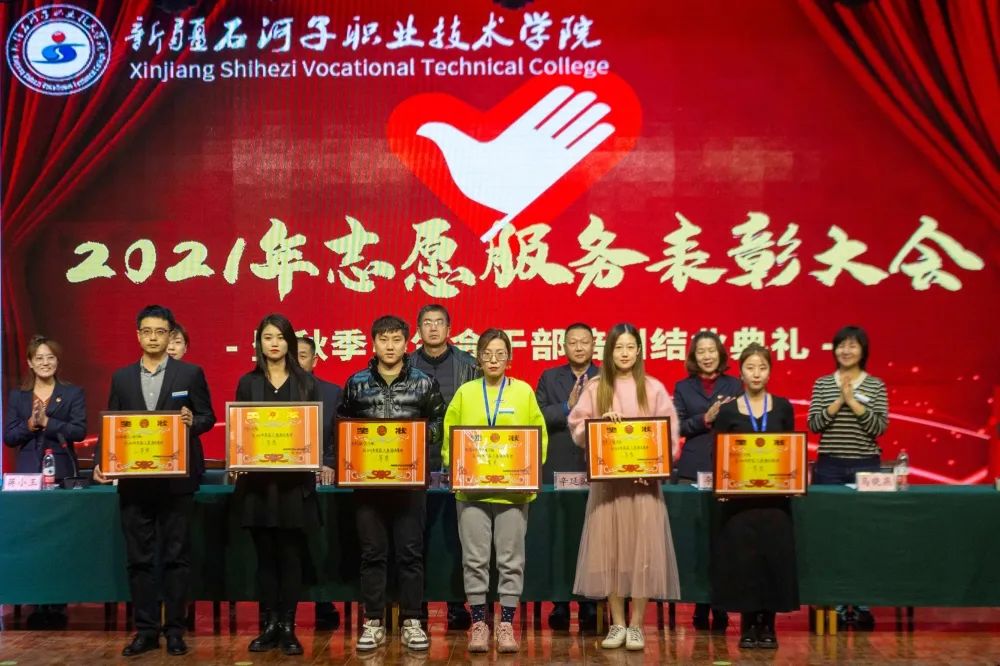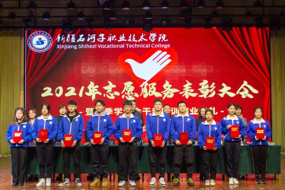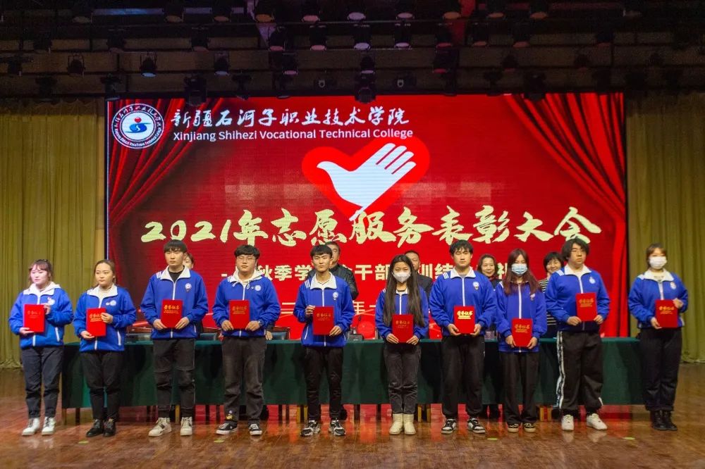 2021年,我院的志愿服务时长超八万小时,青年志愿者积极参加自治区职业技能大赛、兵团职业教育活动周、兵团大学生暑期三下乡、服务社区、学院各类考试、大型赛会、疫情防控等各项志愿服务活动,广大志愿者以团结协作的精神、真诚美好的微笑、周到细致的服务,为学院赢得了荣誉,展示了我院学子的良好形象,受到了社会各界的广泛好评,涌现出一批优秀的青年志愿者和志愿服务先进集体。大会对优秀青年志愿者和志愿服务先进集体进行了表彰。