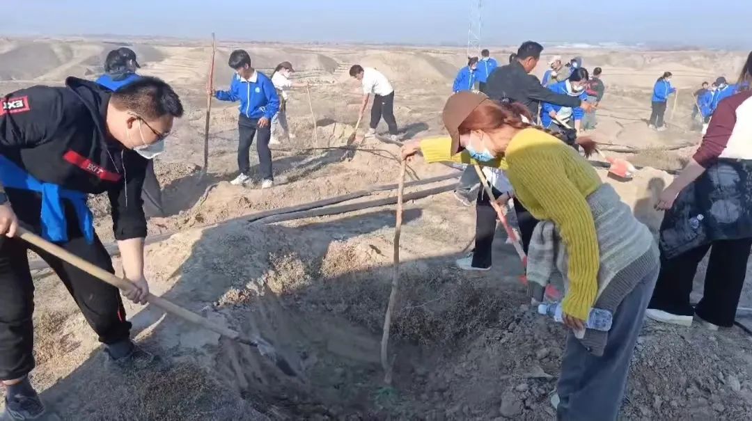 活动现场团员青年们劲头十足,相互协作、密切配合,经过一上午的齐心努力,共植树200余棵,一株株新栽苗木在蓝天下迎风挺立,展现着蓬勃的生机活力。