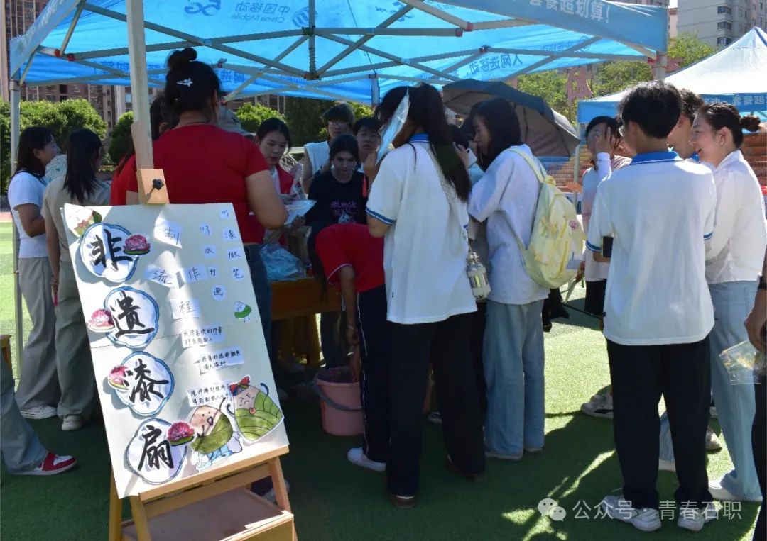 粽子作为端午节的传统节日食品,深受广大学生的欢迎,在午“粽”情长体验区,领导老师同学生一起包粽子,欢声笑语,其乐融融。学生们在包粽子的过程中,不仅体验到了传统节日的氛围,还学到了一项实用的生活技能。最受大家欢迎的项目是制作非遗漆扇,学院团委特意为学生准备了200把漆扇,希望通过制作非遗漆扇让学生感受古老工艺与现代形式巧妙结合的独特;艾香包展区,同学们用心地将艾草填充进香包,寓意着驱邪避瘟、祈福安康,完成后,将香包佩戴在身上,自豪地展示自己的手工制品;在穿五彩绳展区,大家通力合作,将五彩绳编织成精美的手链或脚链,这不仅是一种传统的节日装饰,更是一种美好的祝福,寓意着健康、快乐、平安;趣味投壶展区,气氛热烈,学生们跃跃欲试,投壶这项古老的游戏不仅考验技巧,更蕴含着中华文化的智慧与雅趣。活动现场,学院团委还邀请师市书法家协会副主席、继续教育学院院长王国强挥毫泼墨,撰写书法作品送给大家。