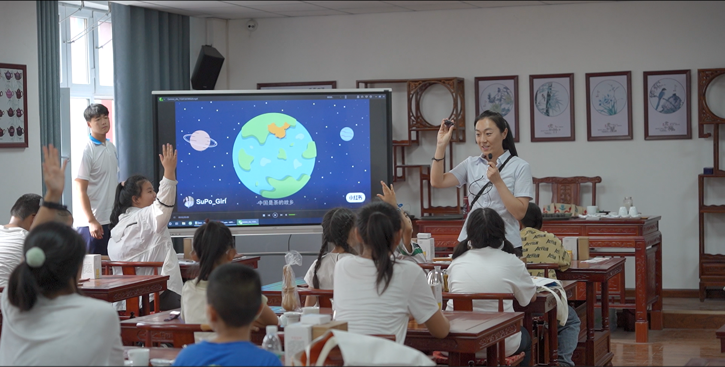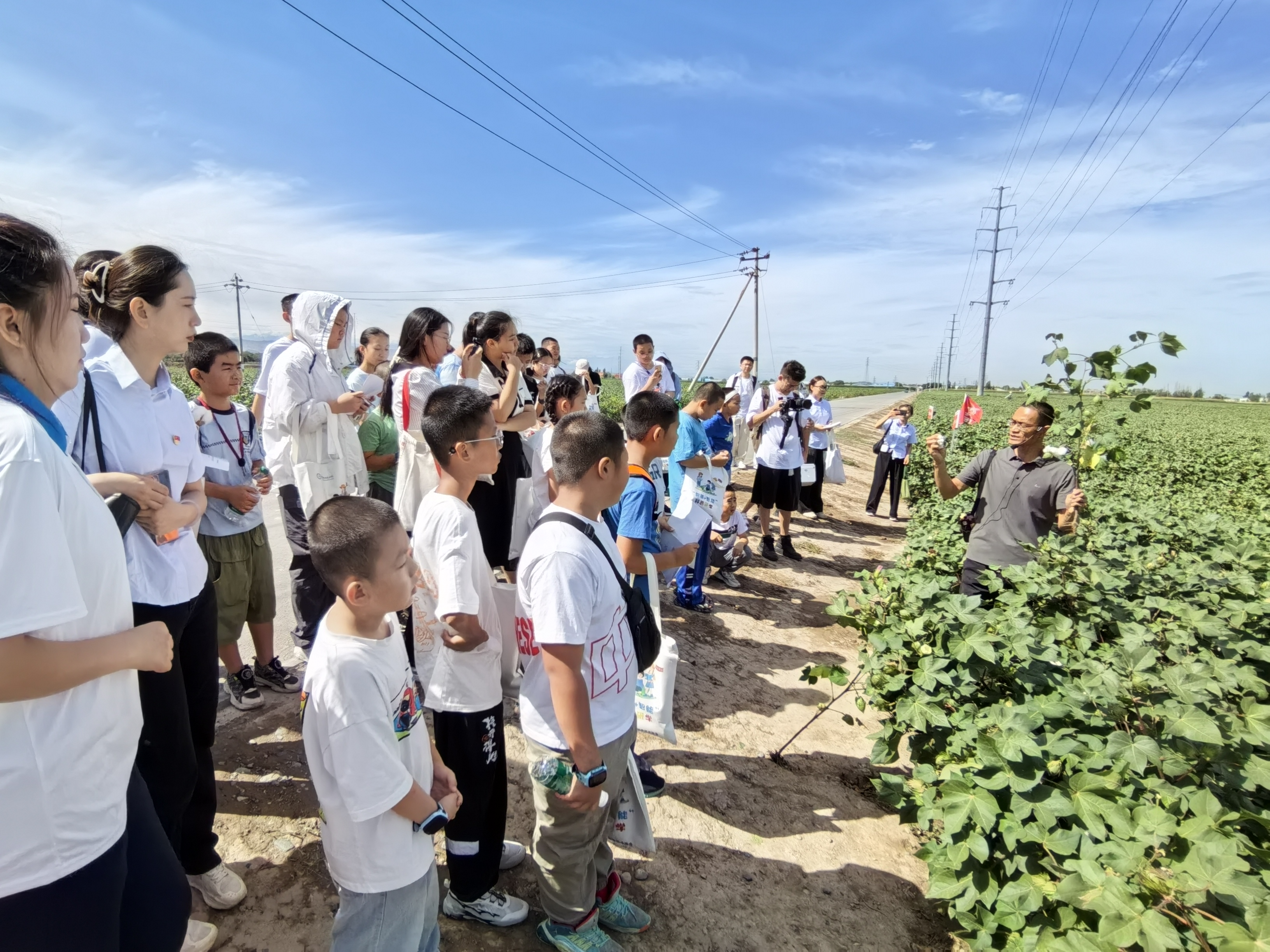 活动首站,青少年们来到新疆农垦科学院,深入了解农业科技的发展历程与科技成果,提高对现代农业的认知。在兵团种质资源库和农垦科学院一轮试验地,青少年们认真细致地观察了棉花的生长情况,了解了棉花耕种的相关知识。研学第二站是国家工业示范基地——原八一棉纺厂厂房,青少年们参观了军垦工业遗址,集体换上“芳华”军装,以唱红歌、诗朗诵的形式,重温了兵团工业发展的辉煌历程和军垦战士的峥嵘岁月,进一步增强大家的爱国主义情怀。在学院旅游综合实训室和茶艺实训室,同学们通过3D虚拟现实技术沉浸式参观了北京故宫博物馆、喀纳斯景区等,感悟科技为生活带来的便利。学院专业教师详细向青少年们详细讲解了茶的历史和制作工艺,讲授“以茶奉客”的敬茶礼仪,在专业教师的指导下,青少年们饶有兴趣地体验了品茶、敬茶等过程。
