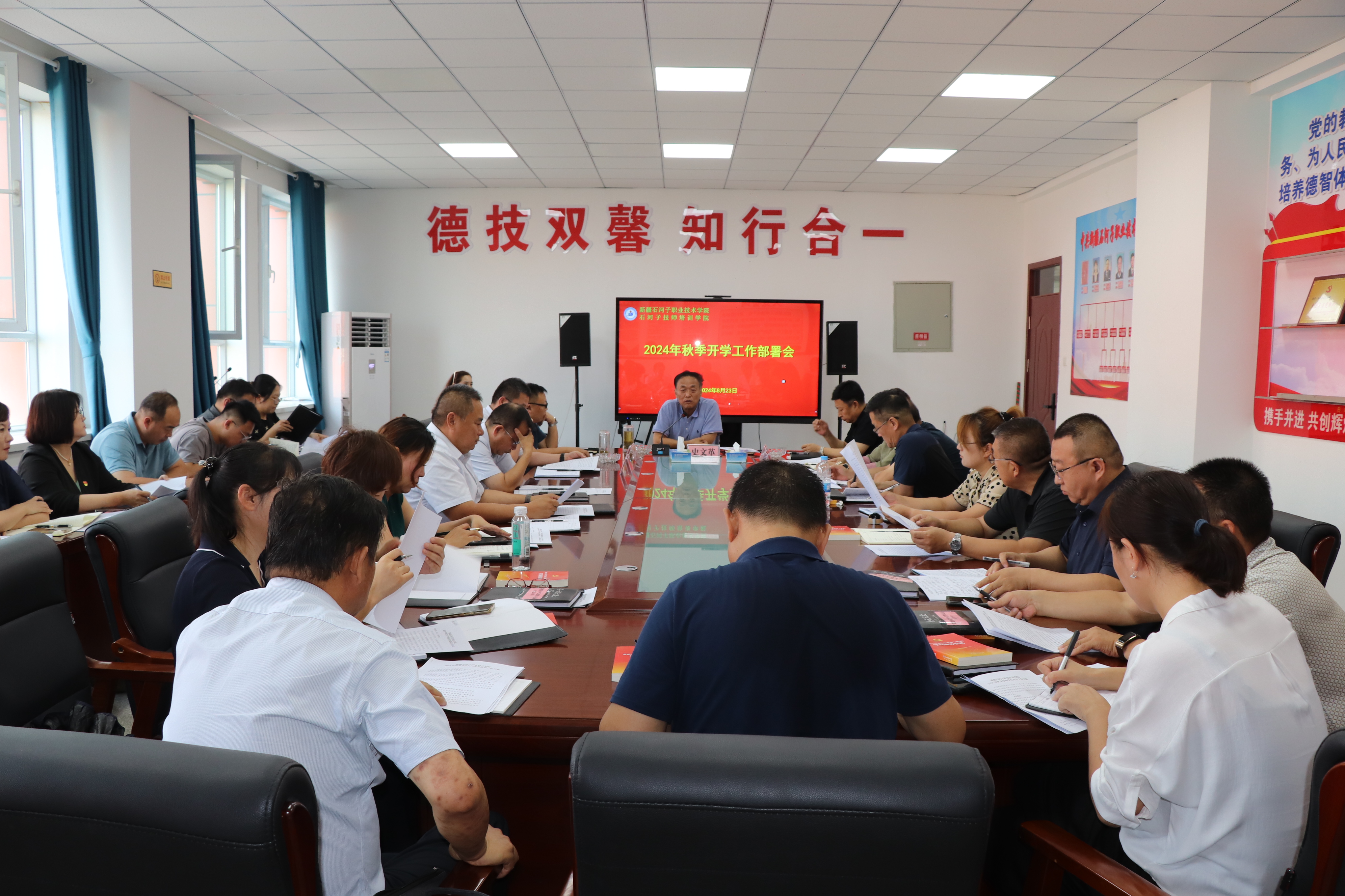 8月23日,学院党委书记史文革主持召开2024年秋季学期开学工作部署会。会议深入总结了上半年的工作成果,从党建引领、意识形态、教育教学、后勤保障、校企合作、安全管理等多个层面,对新学期的各项工作进行了周密部署。下半年,对于学校跨越式、高质量发展至关重要,各部门要结合各自的工作实际,紧盯目标,挂图作战、强补短板。全体教职工要凝心聚力,攻坚克难,确保各项工作按时高效推进。
