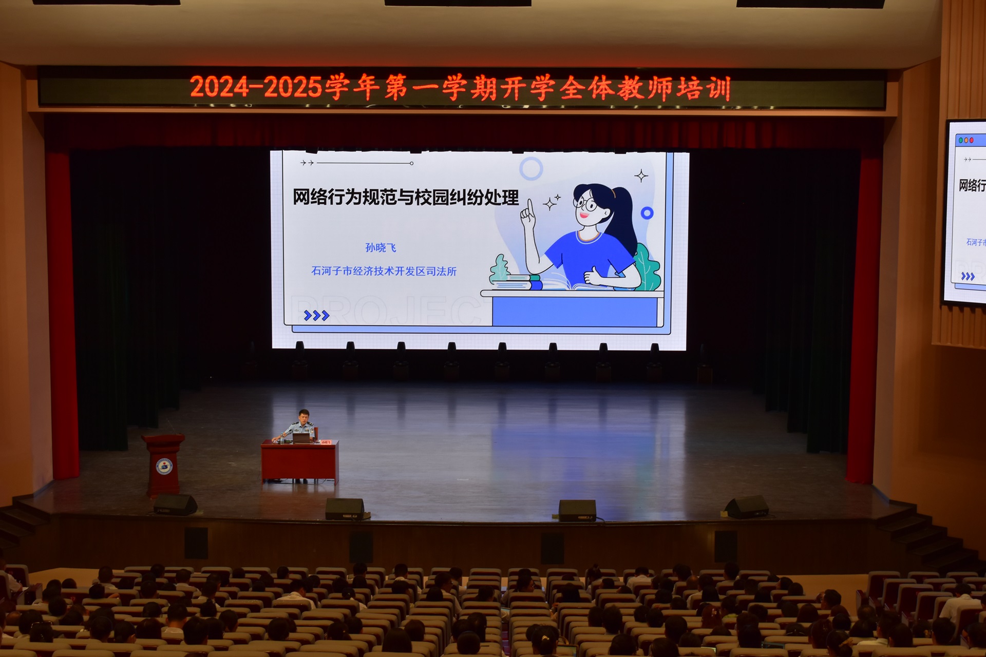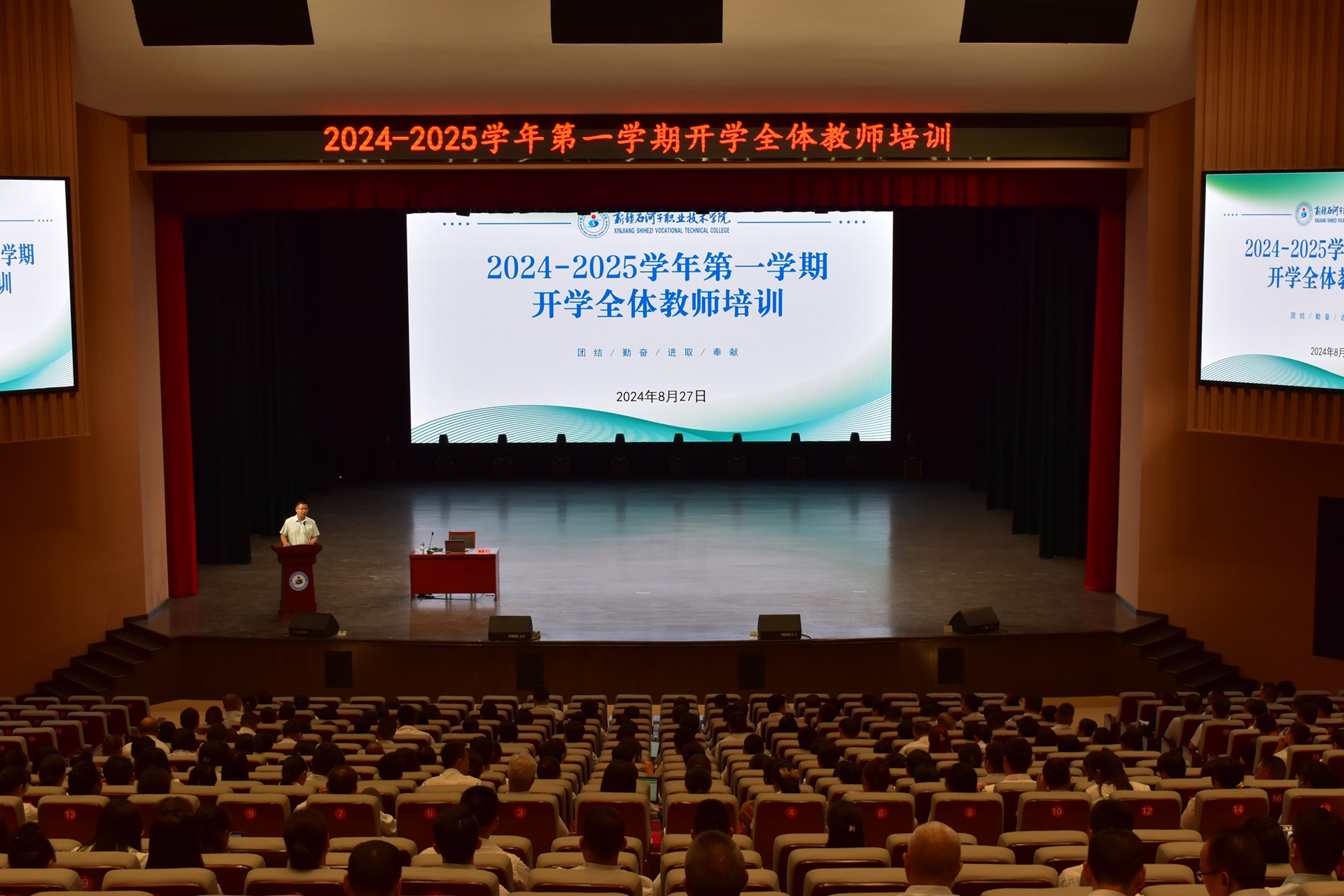 (徐千然 报道)为进一步强化教师队伍建设,提升教师专业素养和教育教学能力,确保新学期学院各项工作的平稳、有序、高效推进,学院于8月27日,在学术报告厅开展2024-2025学年第一学期开学教师培训工作,学院全体教师参加培训。