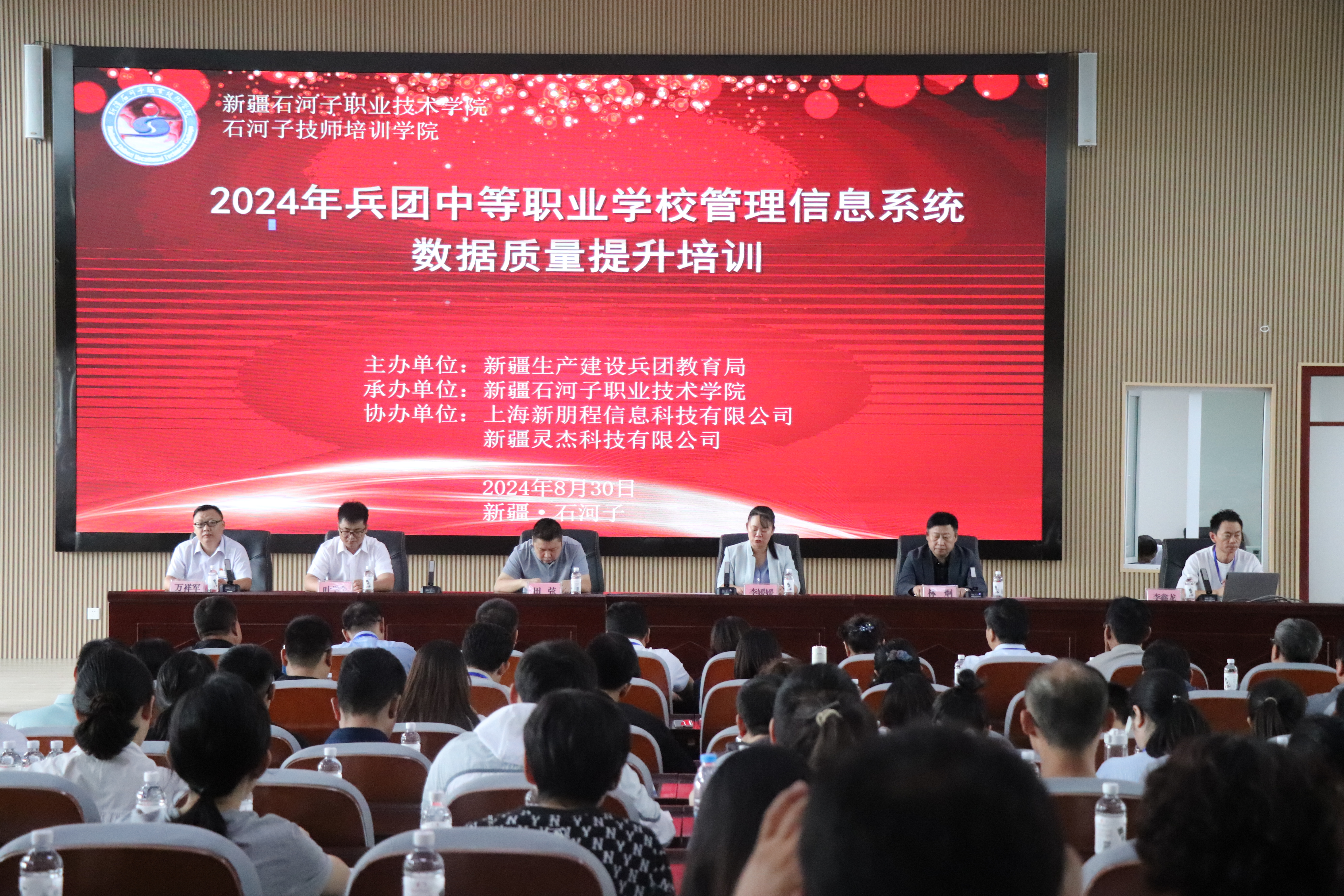 (杨慧 报道)为进一步提升兵团中等职业学校管理信息系统(简称中职学校系统)的数据填报质量,根据兵团教育局对中职学校系统数据管理的具体要求,8月30日上午,2024年兵团中等职业学校管理信息系统培训班开班仪式在新疆石河子职业技术学院技能培训学院三楼举行。兵团教育局职成处副处长李媛媛,学院院长林炯,上海新朋程教育集团副总裁、教育部全国中等职业学校管理信息系统项目负责人田弦,新疆新鹏程信息科技有限公司负责人李鑫龙,兵团教育局干部叶学全出席会议,来自各师市教育局业务科室负责人、中职学校相关负责人等100余人参会,学院纪委书记万祥军主持会议。