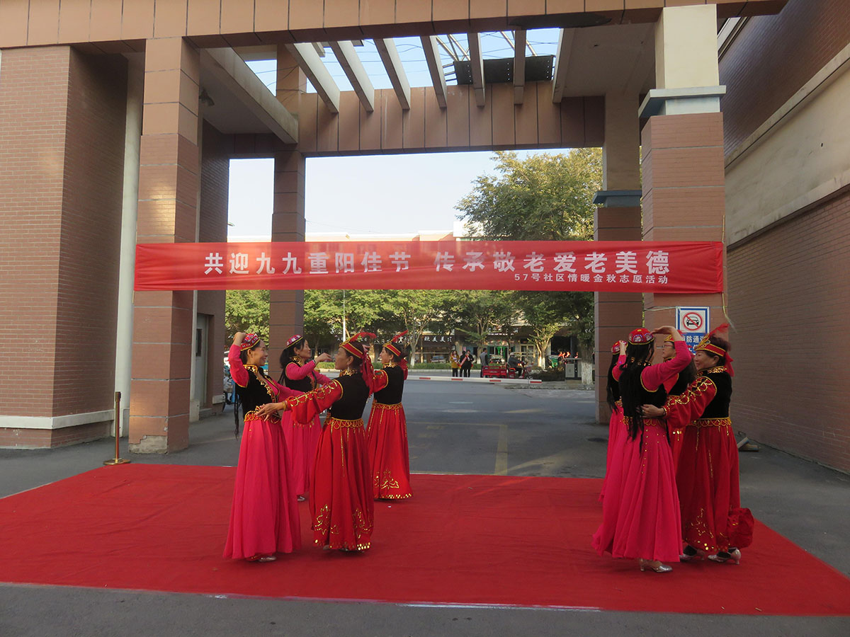 57社区“访惠聚”工作组策划、主持了“九九重阳节·浓浓敬老情”的联谊活动,社区文艺骨干自编自演的“美丽新疆”、“新达坂城的姑娘”等民族舞蹈赢得了居民们的阵阵掌声,Beat365中文官方网站的青年志愿者用自己特殊的方式祝福老年朋友节日快乐,带来了《映山红》、《把一切献给党》等红歌;2名志愿者将书法和中华武术两个传统节目进行了最完美的结合,并为老年居民代表赠送了书法作品,令老年居民们感动不已,感受到了新时代青年尊老敬老的美德。全体在场的居民和青年志愿者一致认为,尊老敬老是我们中华民族的优良传统,是祖先传承下来的文化瑰宝,我们不仅要代代相传,更要帮助他们远离孤独,感受世间的温馨美好,安度晚年。