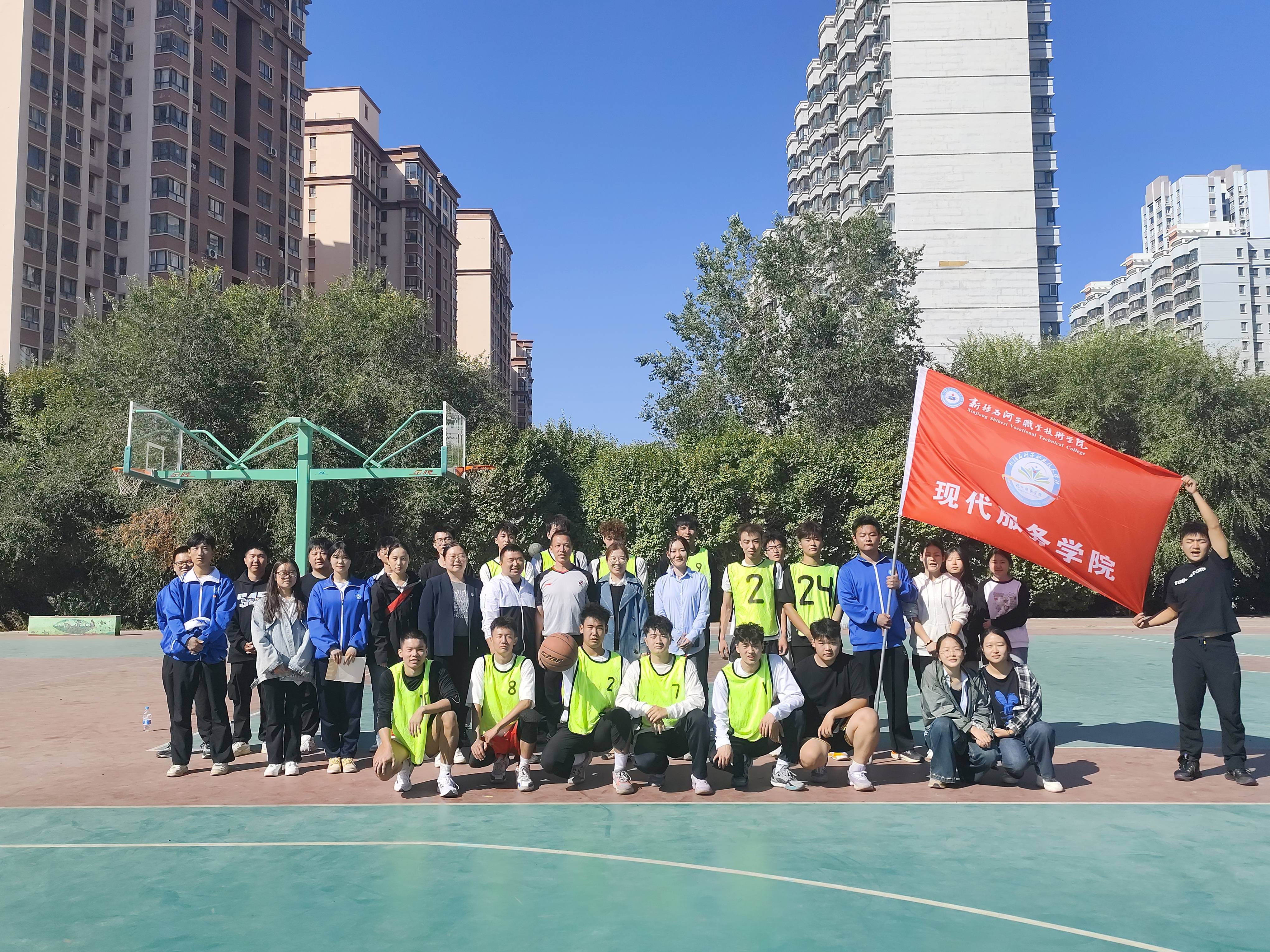 (杨静静 王文珠 报道)在中秋佳节,为丰富留校学生的校园文化生活,增进各二级学院学生之间的交流与友谊,2024年9月15日上午,现代服务学院与信息与通信工程学院携手举办了一场篮球友谊赛。