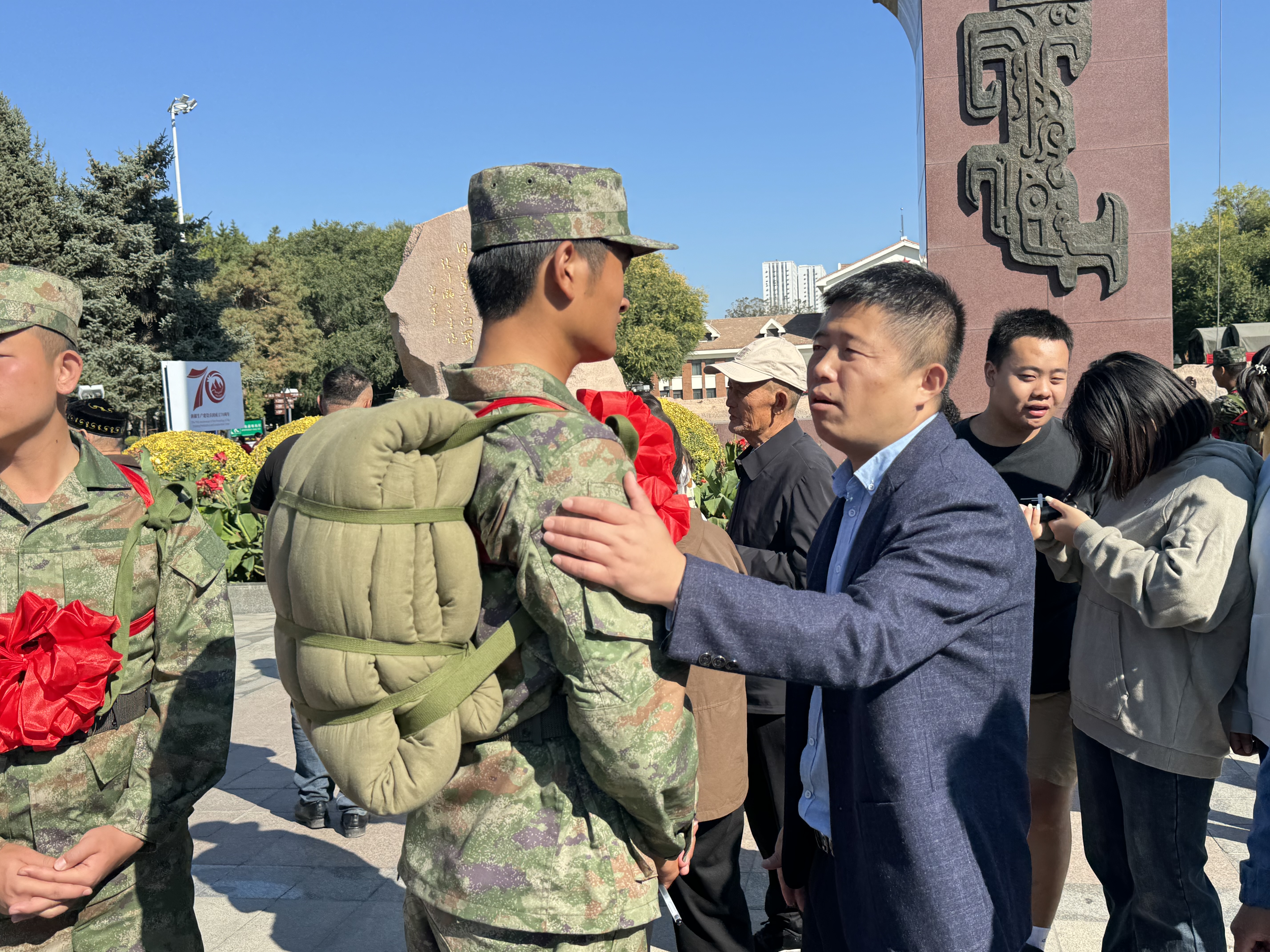 (李德良 崔安琪报道)“用热血绘就青春底色,用奉献诠释使命担当”。9月15日,信息与通信工程学院2022级计算机应用技术专业学生廖鑫晶、2023级计算机应用技术专业学生塔拉尼特·对山拜、2022级数字媒体技术专业学生苏英杰、熊伟成、2022级工业互联网技术专业学生杨永强5位同学,胸佩红花、肩背行囊,在军垦广场参加新兵出征仪式,准备奔赴军营,开启崭新的人生旅程。信息与通信工程学院综合办主任李德良、团总支书记崔安琪、教师代表王莹莹老师及10名学生代表前往观礼,与家长为他们送别。