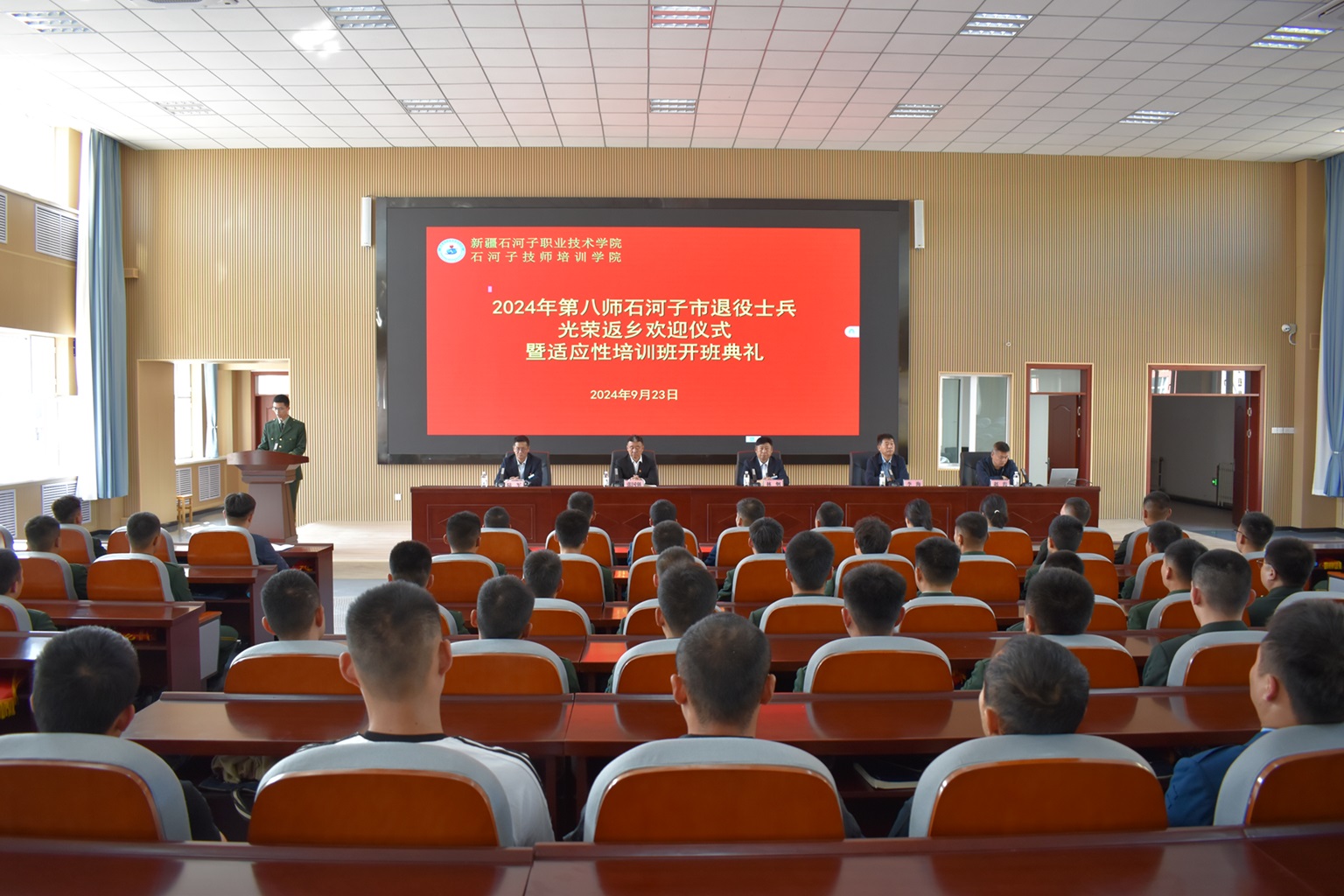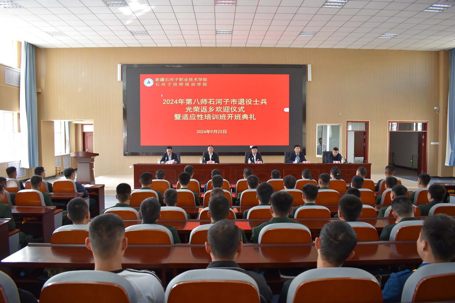 (徐千然 报道)昔日从军报国,今朝“戎”耀回乡。为帮助退役士兵顺利实现从军人到社会建设者的“无缝转变”,9月23日,第八师石河子市退役军人事务局组织的2024年度退役士兵返乡欢迎仪式暨适应性培训班在Beat365中文官方网站顺利开班,第八师石河子市退役军人事务局、人社局、Beat365中文官方网站有关负责同志及五十余名退役士兵参加典礼。