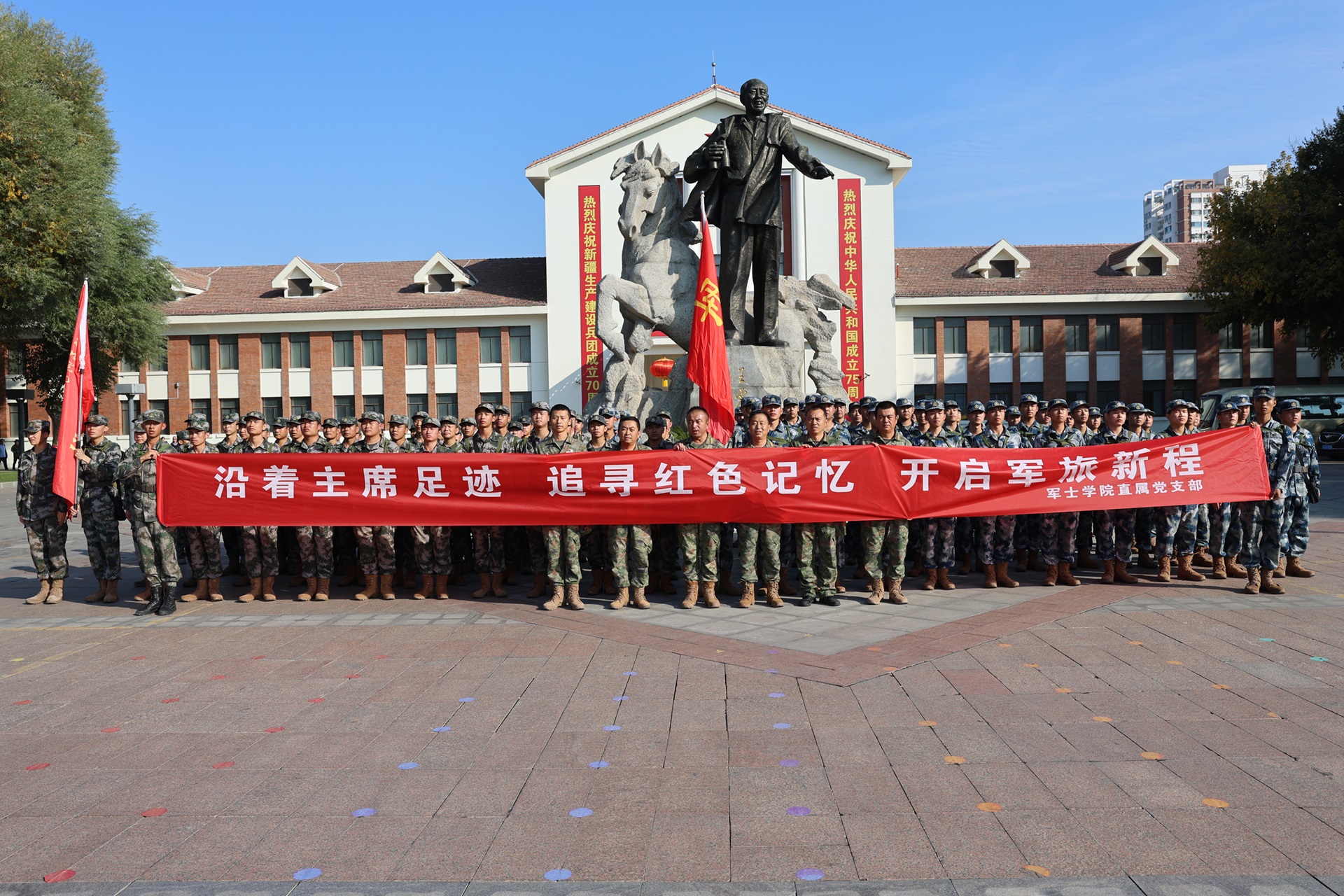 军士生们怀着崇敬之心去,带着深刻感悟回,感受历史情境,能够更加真切地体会到这份初心与使命,引导学生在新中国成立75周年,兵团成立70周年之际,牢记传承红色基因使命、赓续红色血脉,在行走的课堂中厚植爱国情怀,践行强国强军梦想。