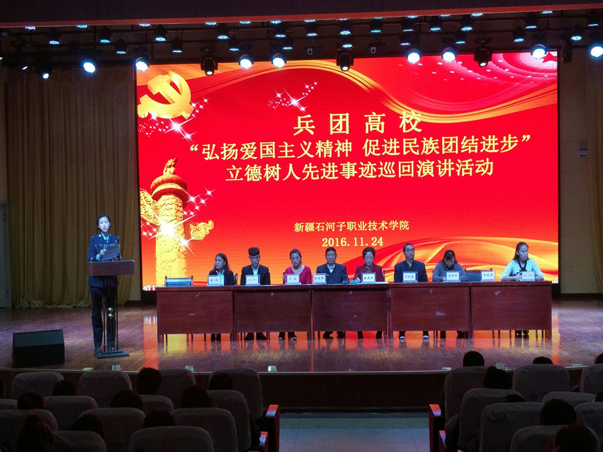 11月24日上午,由兵团教育局组织的兵团高校“弘扬爱国主义精神,促进民族团结进步”立德树人先进事迹巡回演讲活动在学院综合楼四楼举行。
