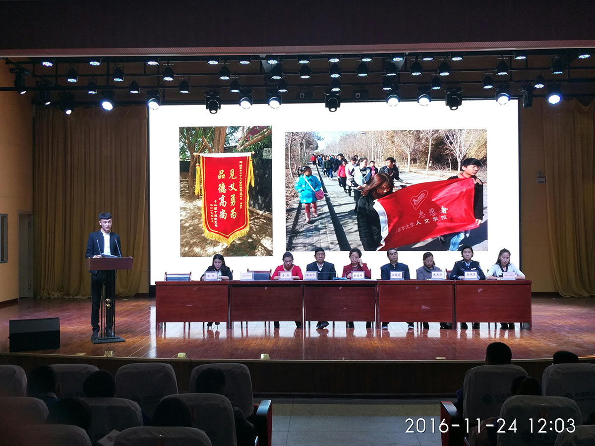 学院对本次的活动相当重视,整个活动由学工处进行策划,团委所属部门青年志愿者协会维持会场纪律。各个分院选取优秀学生听取这次演讲,达到了深化弘扬爱国主义精神,促进民族团结进步思想,提高学院的精神文明建设水平的目的。