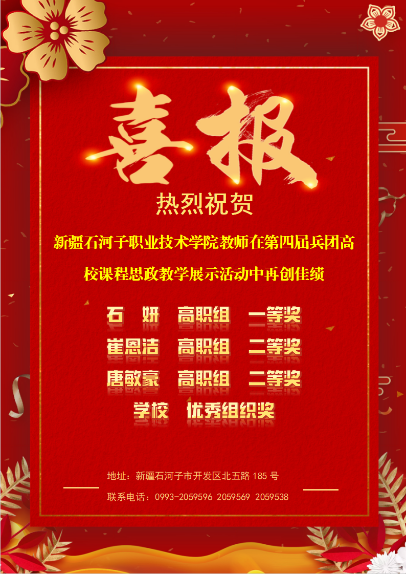 (杨慧 报道)近日,由兵团教育局主办的2024年第四届兵团高校课程思政教学展示活动落下帷幕。经过激烈角逐,Beat365中文官方网站教师在众多选手中脱颖而出并斩获佳绩。其中,石妍老师荣获高职组一等奖,崔恩洁、唐敏豪老师分别荣获高职组二等奖,学校荣获优秀组织奖。