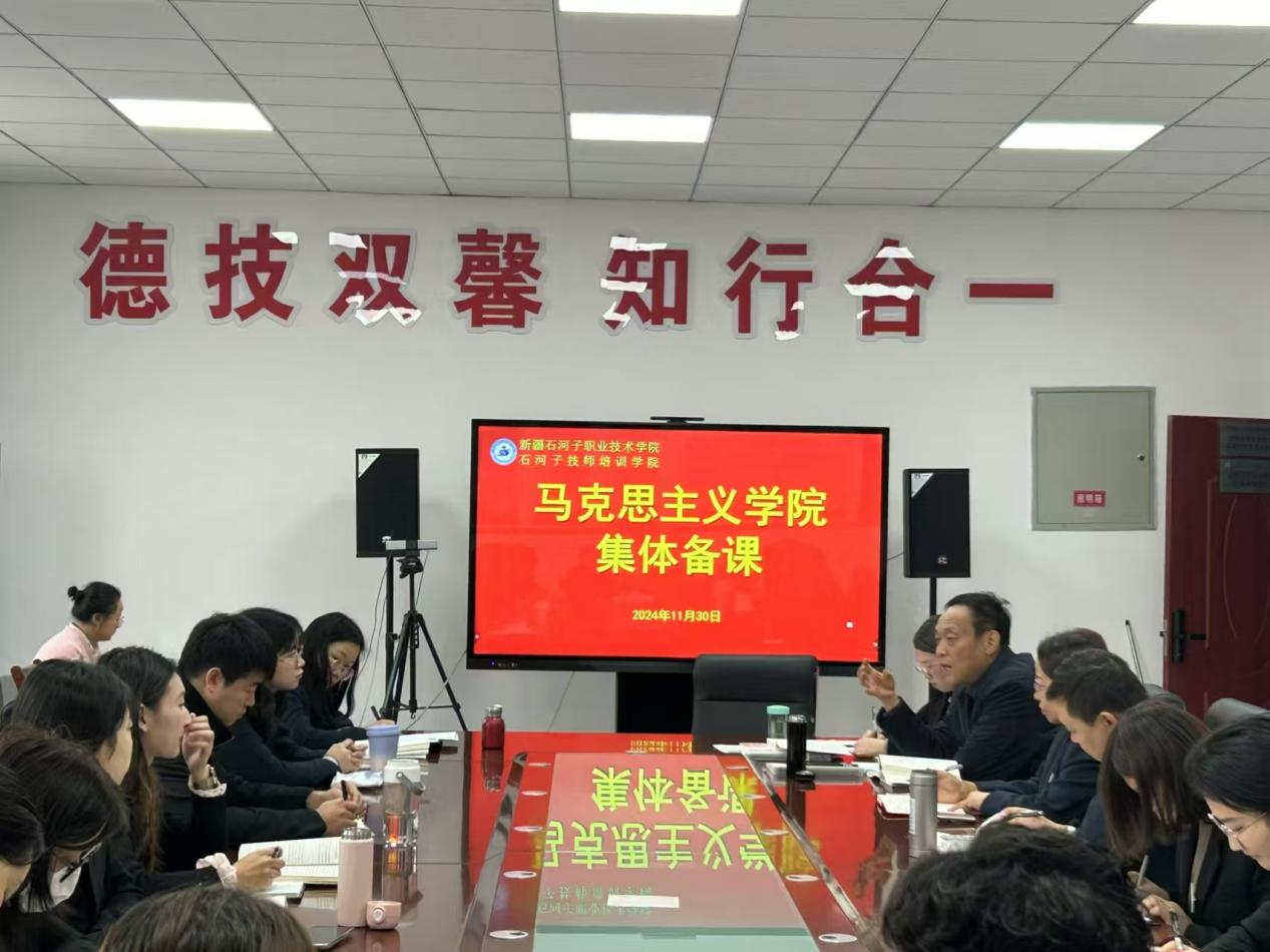 (戴博柠 报道)为坚持不懈用习近平新时代中国特色社会主义思想铸魂育人,大力推动党的二十届三中全会精神融入思政课,深入贯彻落实习近平总书记关于思政课建设的重要指示和新时代学校思政课建设推进会精神,2024年11月30日上午,马克思主义学院在厚德楼213会议室开展集体备课会。学院党委书记史文革参加并指导集体备课。