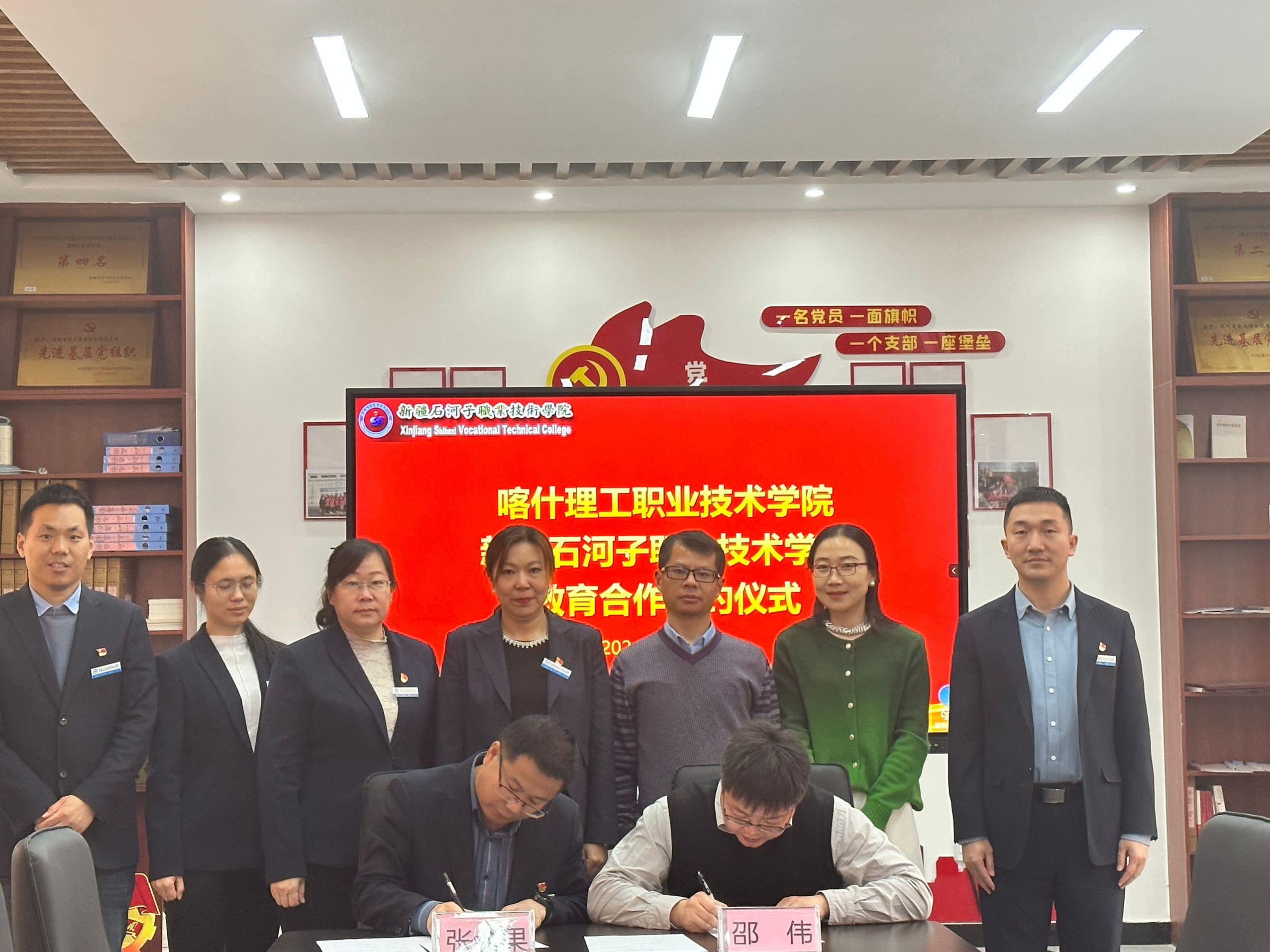 会上,张金果副院长对喀什理工职业技术学院一行的到来表示了热烈的欢迎,并详细介绍了学校的历史沿革、师资力量、教学设施、科研成果以及在社会服务等方面的情况,包括学院的,希望未来与喀什理工职业技术学院在相关领域开展更加紧密的合作。喀什理工职业技术学院副院长邵伟高度赞扬了我校在产教融合、人才培养、科研成果转化等方面取得的成果,希望通过本次座谈,能够加强两校间的交流,在专业建设、人才培养等方面互鉴互促,共同发展。学校教务处处长徐海霞就学院专业设置、专业群建设等内容进行了详细讲解,展示了我校在教育教学改革方面的积极探索与成果。水利建筑工程学院院长张婷介绍了水利建筑工程学院实训室建设及专业发展及校企合作等方面的情况。科研处吴欢欢老师根据校级科研项目和团队的培育、自治区及地区级科研项目的申报、科研成果的培育和管理等议题,以及学校为激励科研创新所采取的系列措施,与喀什理工职业技术学院的教师代表展开深入探讨。与会双方代表郑重签订了教育合作协议,标志着两校在高等职业教育领域的合作迈出了坚定的步伐。