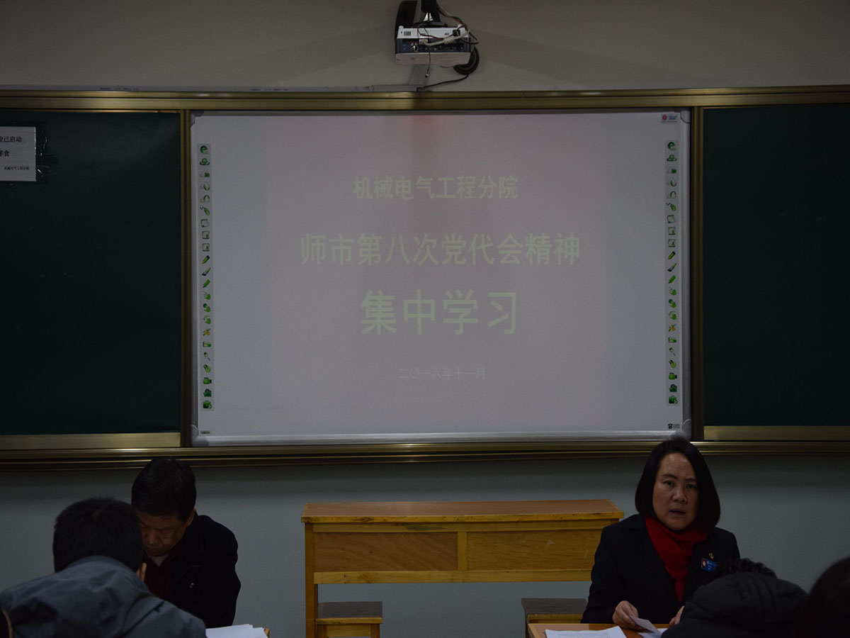 中共第八师石河子市第八次代表大会于2016年10月24日胜利闭幕。按照学院党委统一部署和要求, 11月30日下午,机电分院党总支组织全体党员,认真学习师市第八次党代会精神,安排部署相关工作。