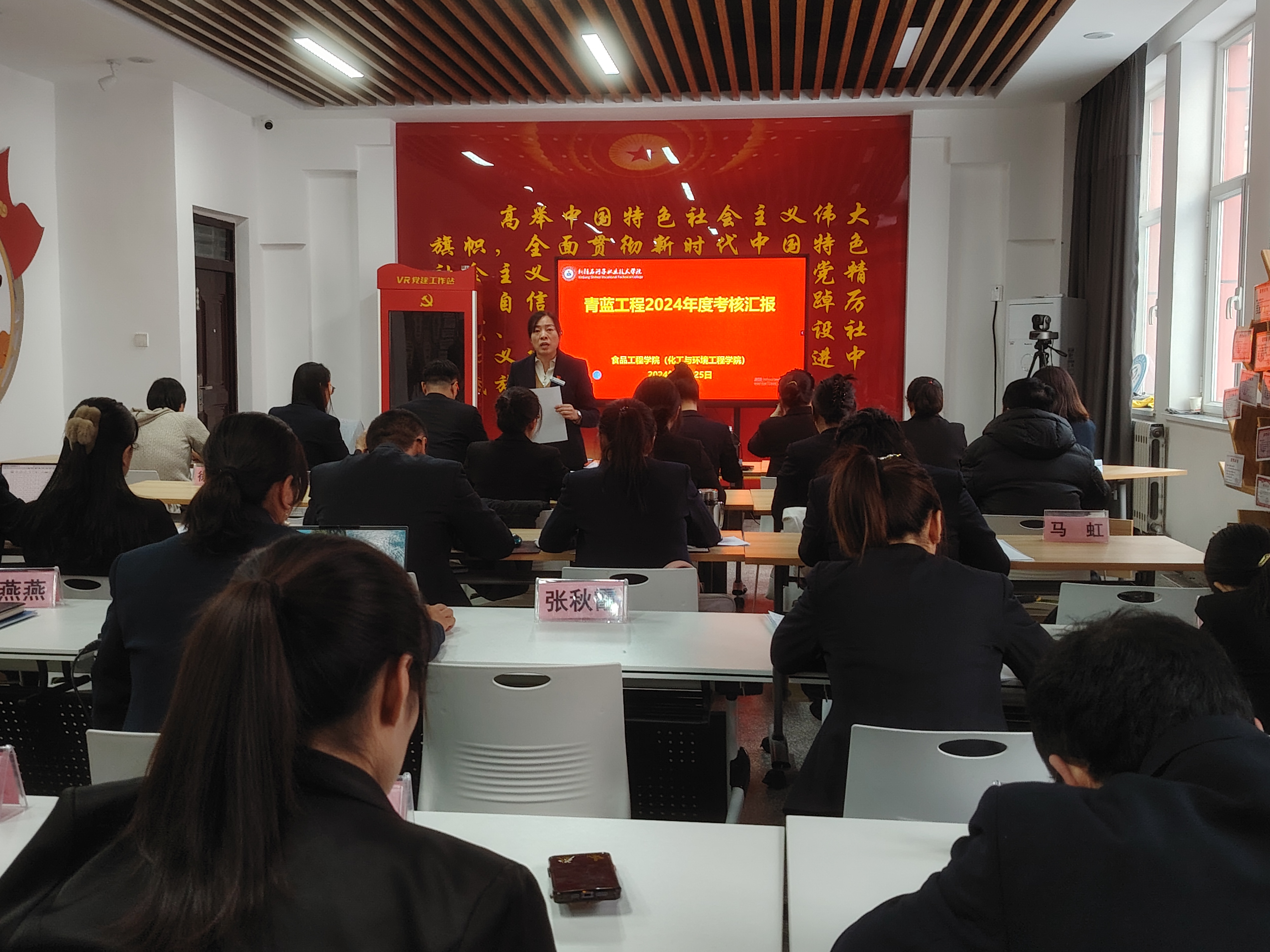 (王艳斐 报道)为进一步加强师资队伍建设,充分发挥名师、骨干教师的示范引领作用,加快青年教师的成长步伐,12月25日下午,食品工程(化工与环境工程)学院开展2024年度“青蓝工程”考核工作,学院领导、全体结对师徒参加。