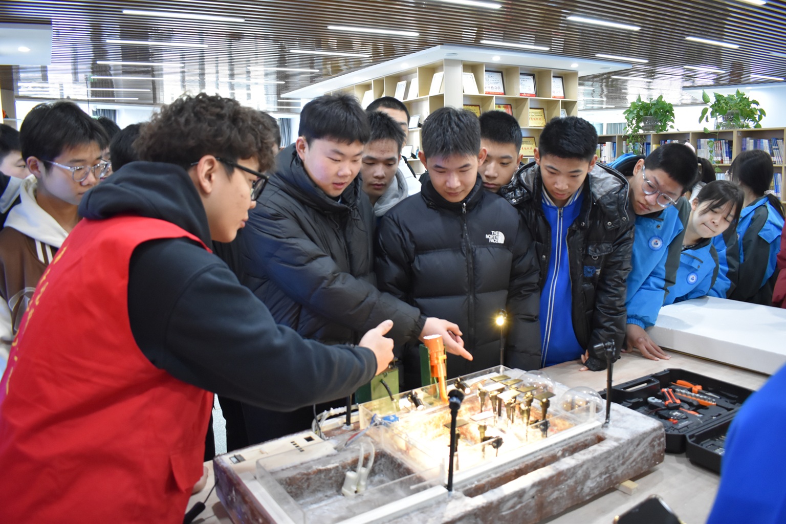 在种德育人实践基地,林炯院长带领学生学生通过VR互动,体验红军“重走”长征路的艰辛,深刻感受到今天幸福生活的来之不易;在爱国主义教育基地,思政教师团队倾情向同学们讲述中国共产党光辉的发展历程,教育引导同学们深刻认识到祖国的伟大成就和作为新时代青年肩负的责任使命,在祖国的荣光下砥砺前行;学生们走进创新创业中心,通过欣赏非遗剪纸、金丝珐琅画、民族特色文创产品,感悟中华优秀传统文化的深厚底蕴和在创新传承中的生命力;在国防教育基地,军士学院教师向学生们讲述基地中陈列的武器装备所蕴含的深厚的红色历史底蕴,引导学生在知行合一中坚定“技能报国”信念,让兵团精神的火种在新时代焕发更耀眼的光芒。
