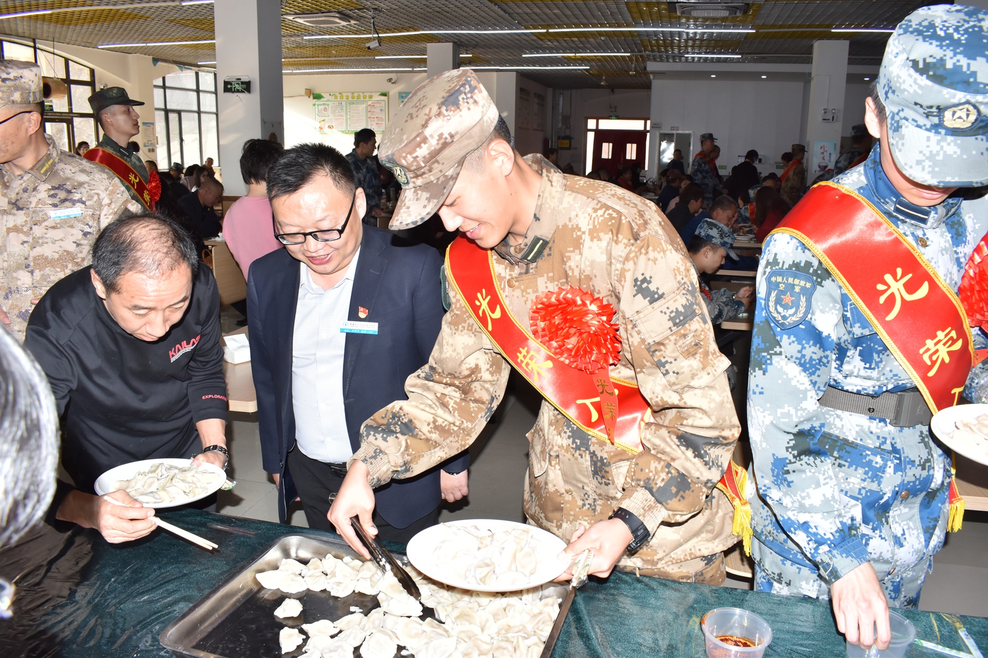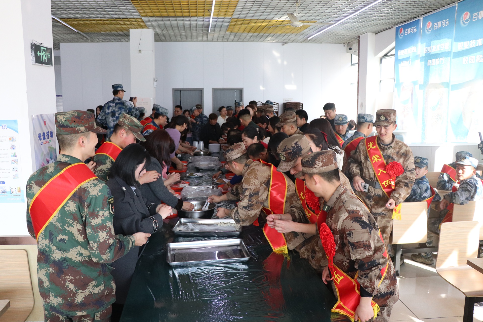 教职工餐厅内温情满满。校领导、学生家长和军士学院教师齐聚一堂,共同为即将远行的军士生包送别水饺。大家围坐在一起,默契的分工协作,擀皮、包馅……一盘盘热气腾腾的饺子承载了家的味道、学校生活的点滴与师生共同的回忆,包含了家人的期待与母校的祝福。