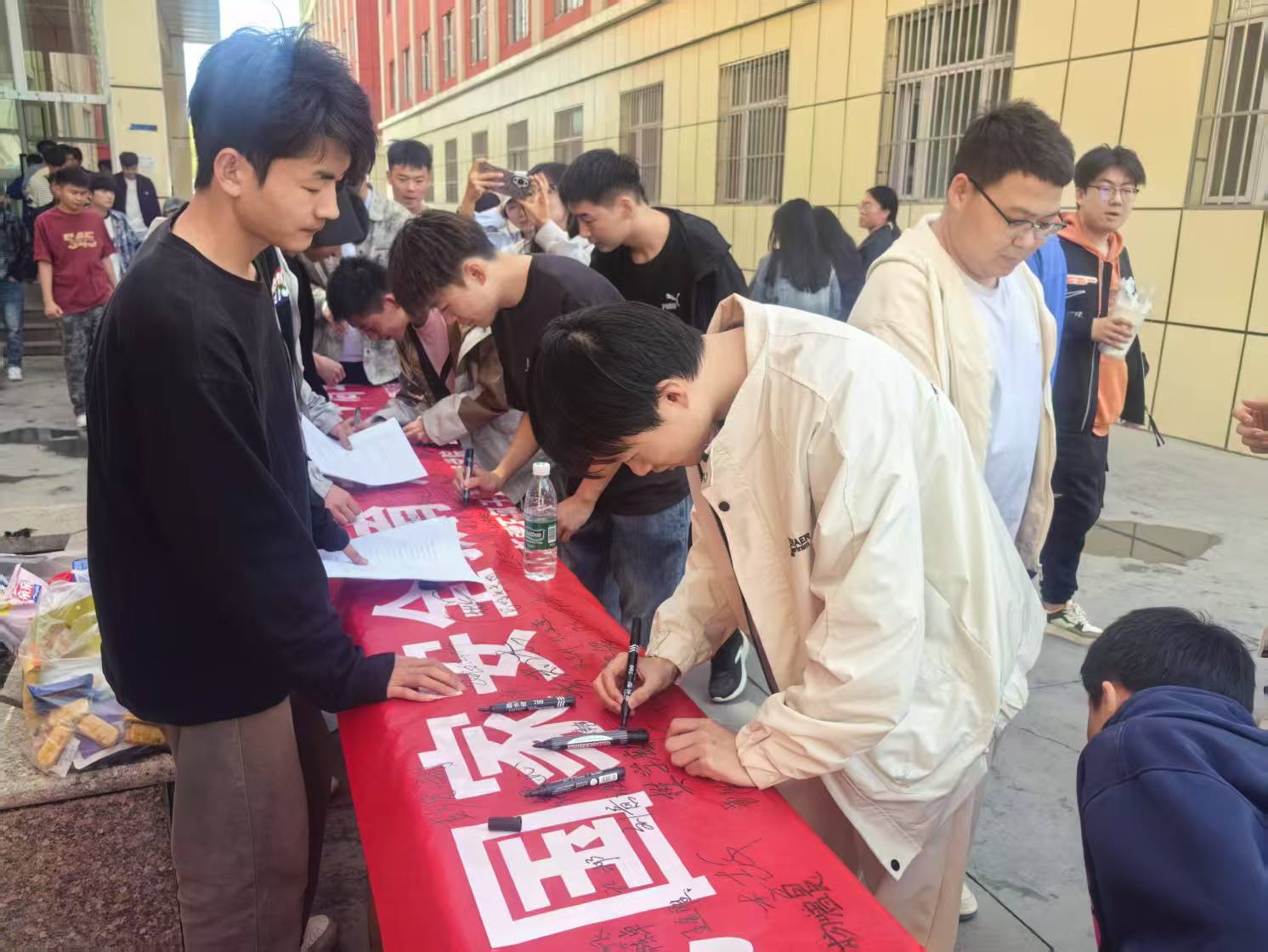 活动前期学校团委通过微信公众号推送、校内南门大屏播放宣传片等方式,提高了全院师生对全民国家安全教育日的关注度,从而广泛吸引学生参与到此次主题团日活动中来。活动紧扣2025年全民国家安全教育日主题,现场设置了国家安全知识有奖问答、“国家反诈中心”APP安装指导、“国家安全同守护”倡议签名接力等多个环节,通过启发式、互动式、体验式的宣传帮助学生掌握国家安全法律法规,自觉增强安全防范意识,携手筑牢国家安全防线。活动中同学们纷纷在横幅上完成签名接力并许下“国家安全 青春挺膺”的庄严承诺,良好地展现了新时代石职学子的责任与担当。