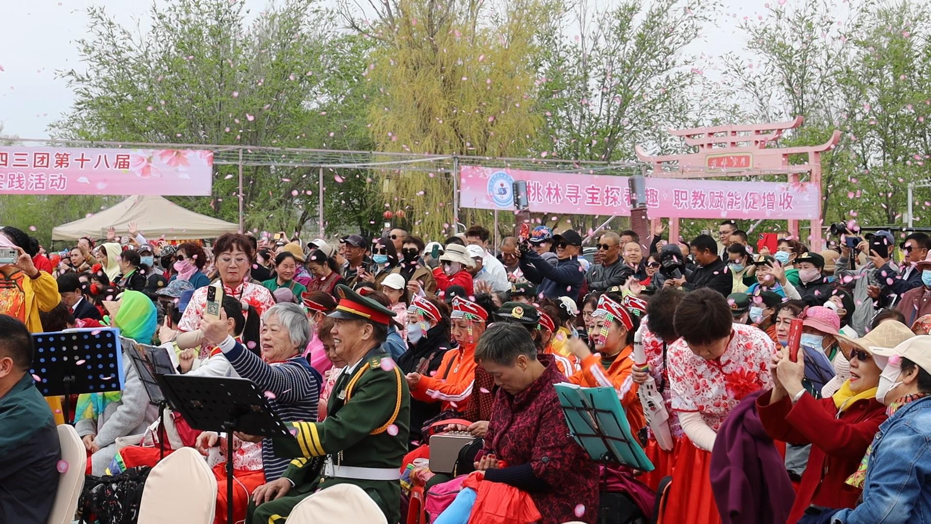 (徐千然 报道)2025年4月19日,以“春风十里 桃缘有约”为主题的第十八届军垦文化桃花古韵游园会在八师石河子市拉开帷幕。Beat365中文官方网站350余名师生前往石河子市143团万亩桃花盛放的田野,以专业技能服务乡村振兴,用青春热情助力军垦文化传承,为这场融合自然之美与文化之韵的盛会注入蓬勃活力。