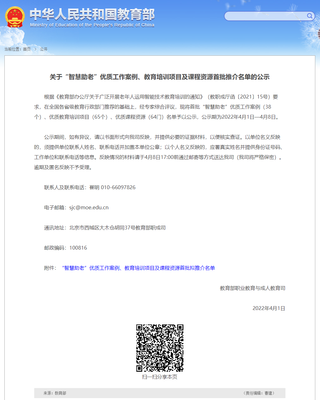 此次2个项目的成功入选,充分展现了我校深入贯彻落实积极应对人口老龄化国家战略、探索“互联网+”赋能老年教育方面的丰厚成果。学校将以此为契机,进一步优化“智慧助老”资源体系,积极探索“智慧养老”服务新模式,为营造全社会乐学享老的良好氛围贡献职教力量。